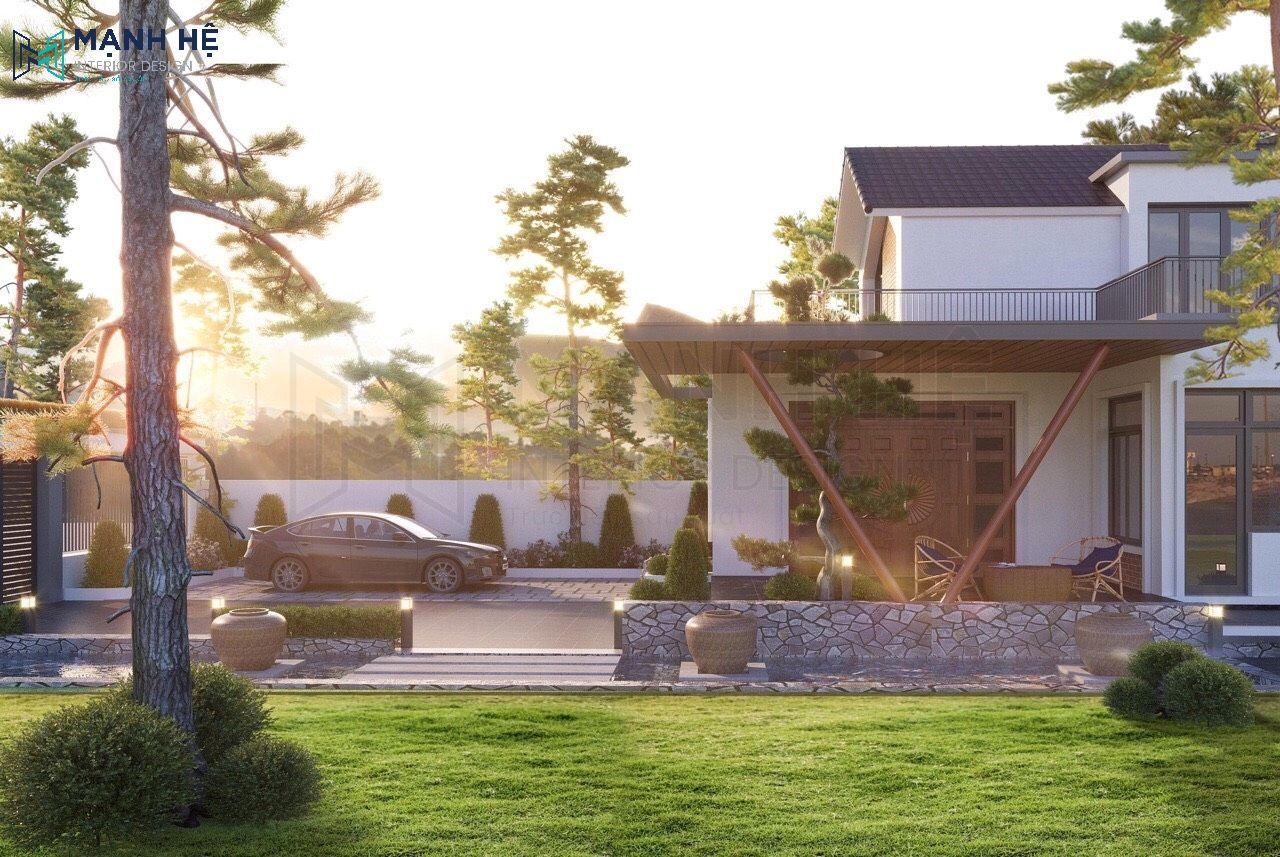 Tổng quan từ hướng sân vườn nhìn vào, biệt thự được thiết kế theo phong cách hiện đại với gam màu sáng kết hợp tối là gam màu chủ đạo. Với một khoảng sân rộng rãi tạo nên một không gian mát mẻ, dễ chịu cho các thành viên trong gia đình được thư giãn, tận hưởng những giây phút trọn vẹn.