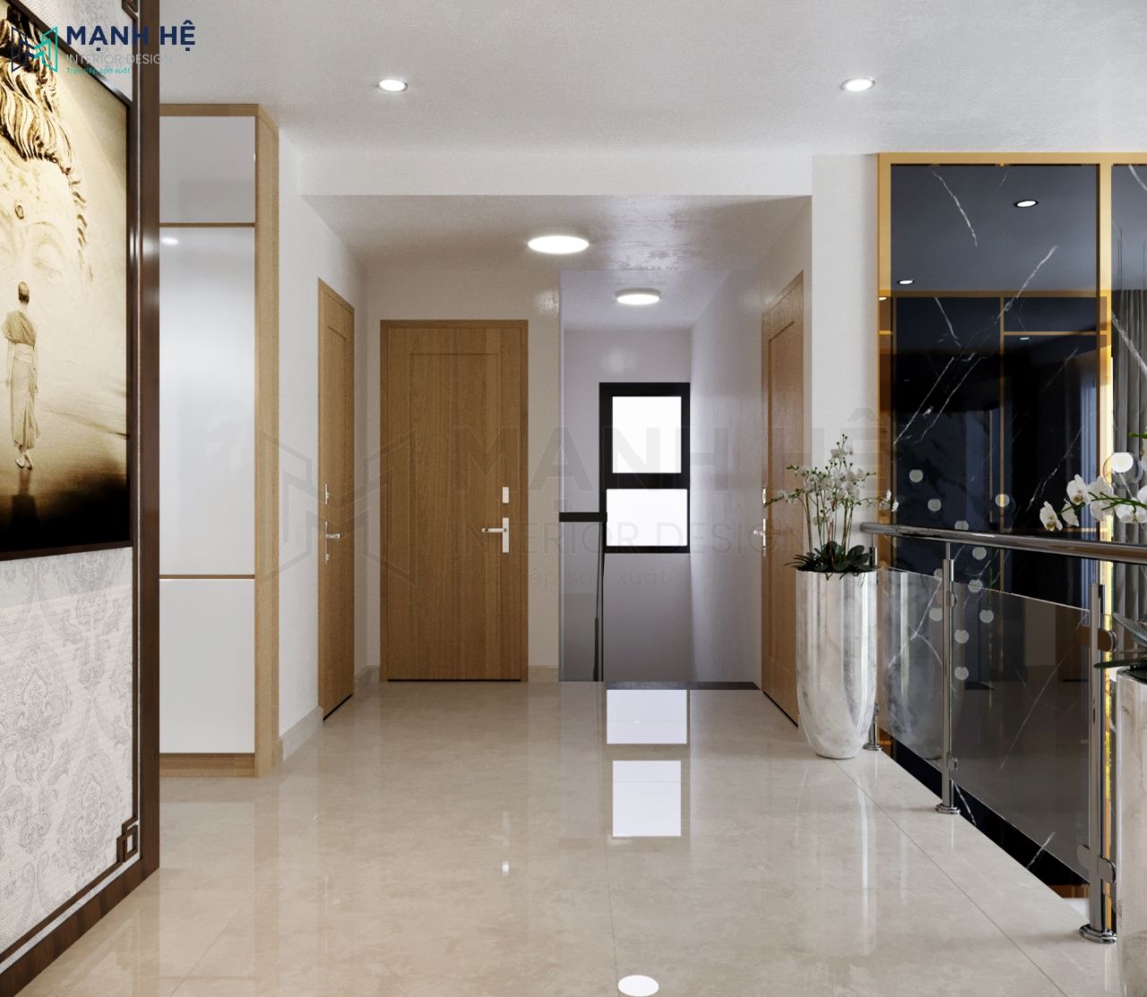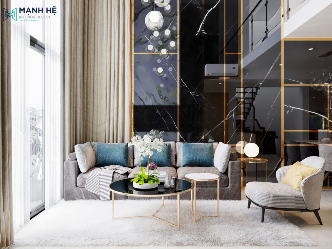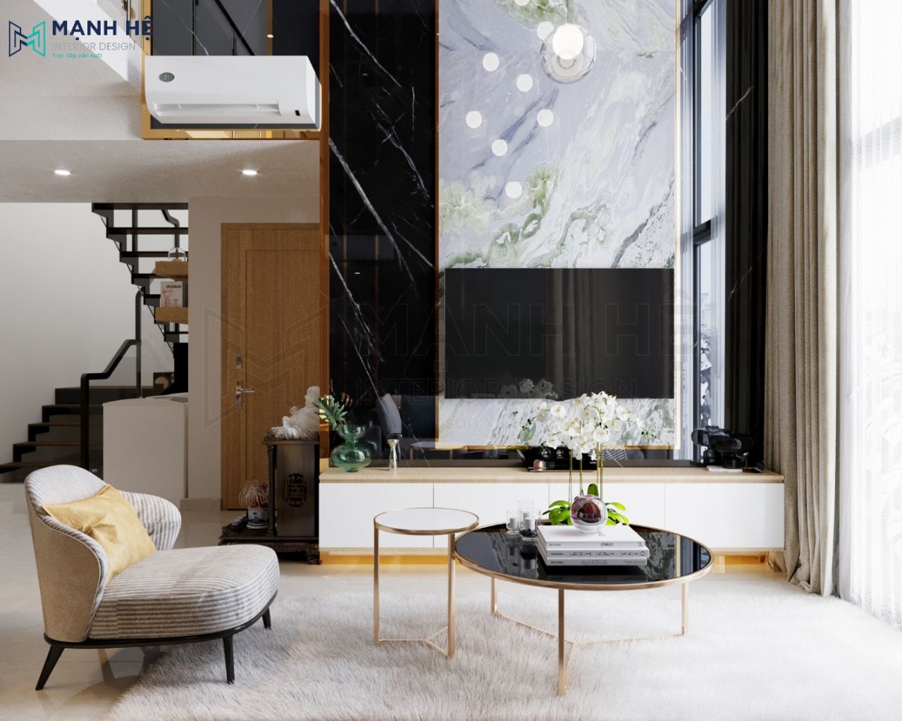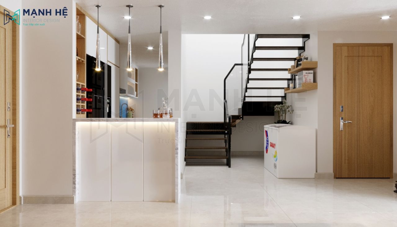 Đá ốp, gỗ MDF màu vàng ấm cúng là 2 vật liệu chủ đạo trong căn hộ duplex 130m2 – 3 phòng ngủ. Đồng thời, với cách bố trí khoa học, khéo léo, ý tưởng sáng tạo, các chuyên gia thiết kế Mạnh Hệ đã phá vỡ được nhược điểm bí bách mà hầu như nhà căn hộ nào cũng gặp phải. Hãy cùng xem giải pháp tối ưu của Mạnh Hệ là gì nhé!