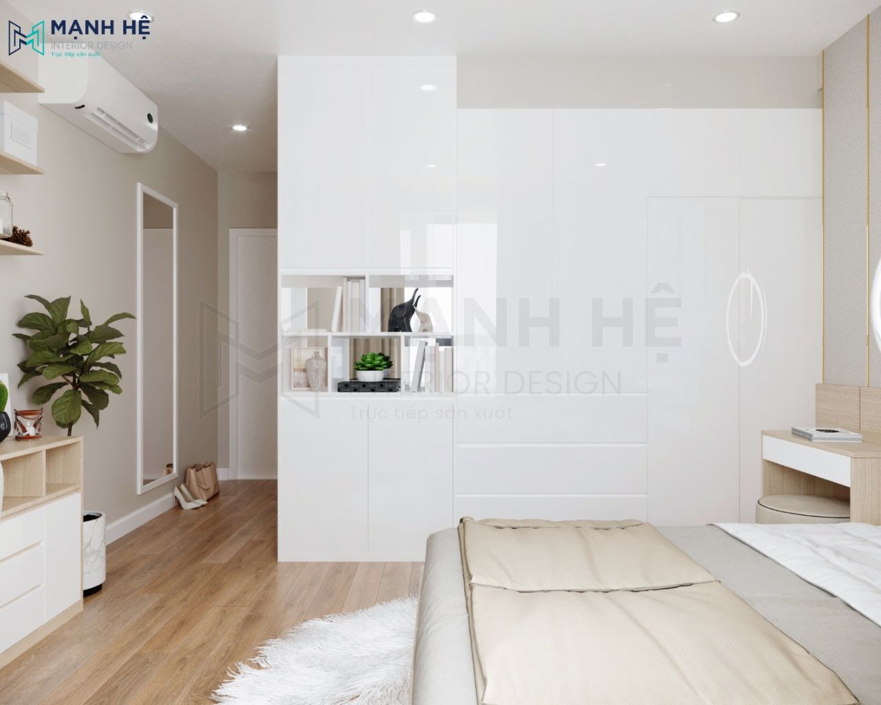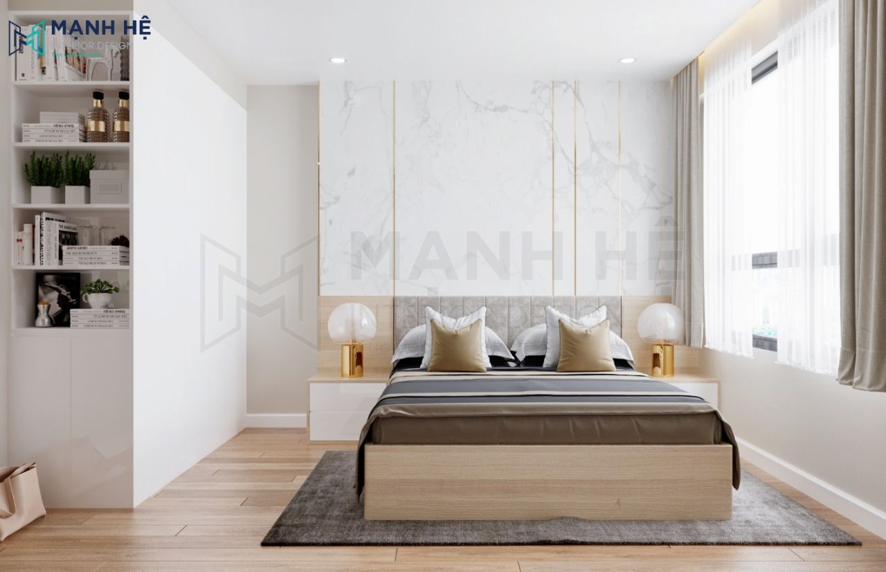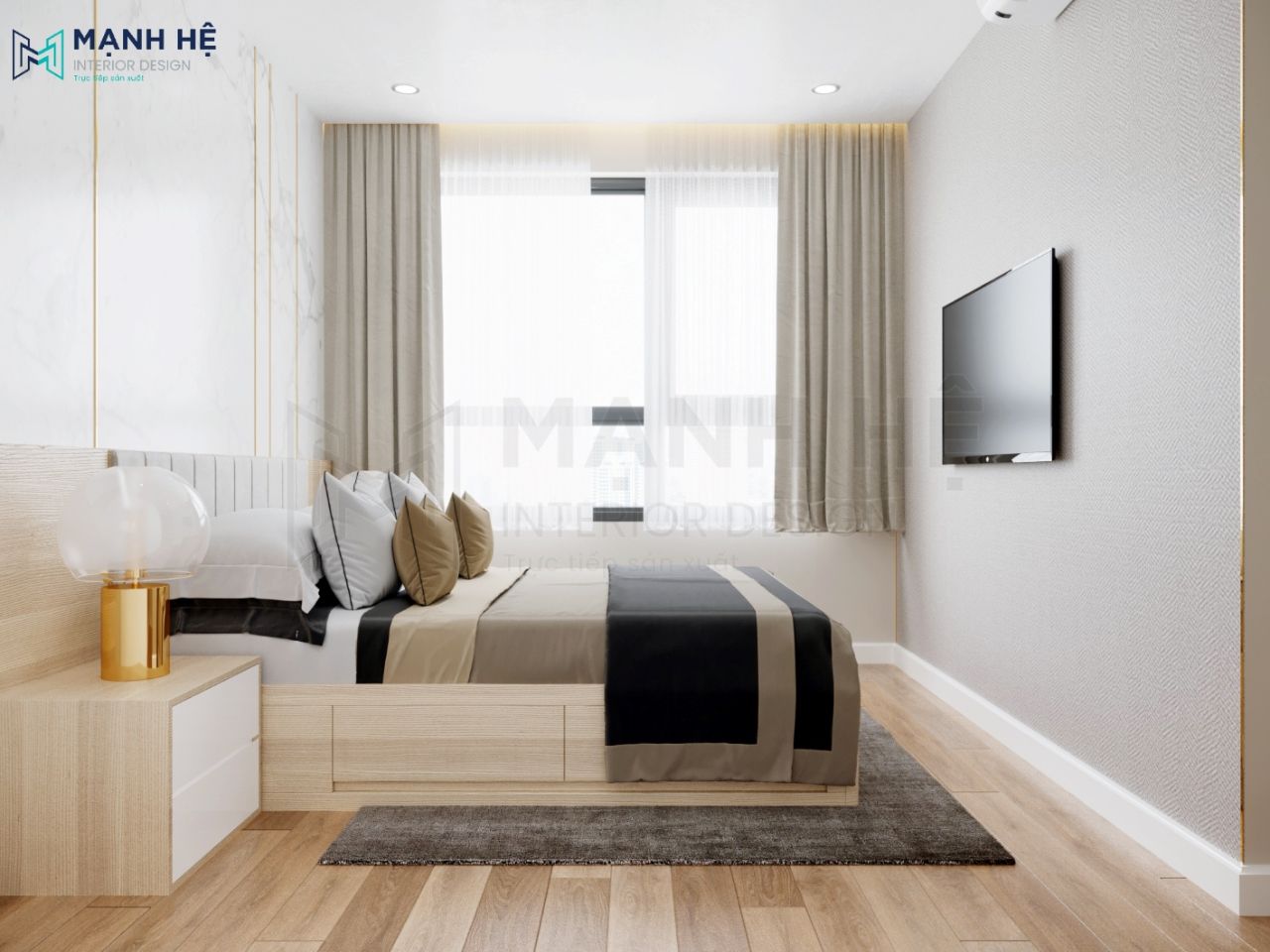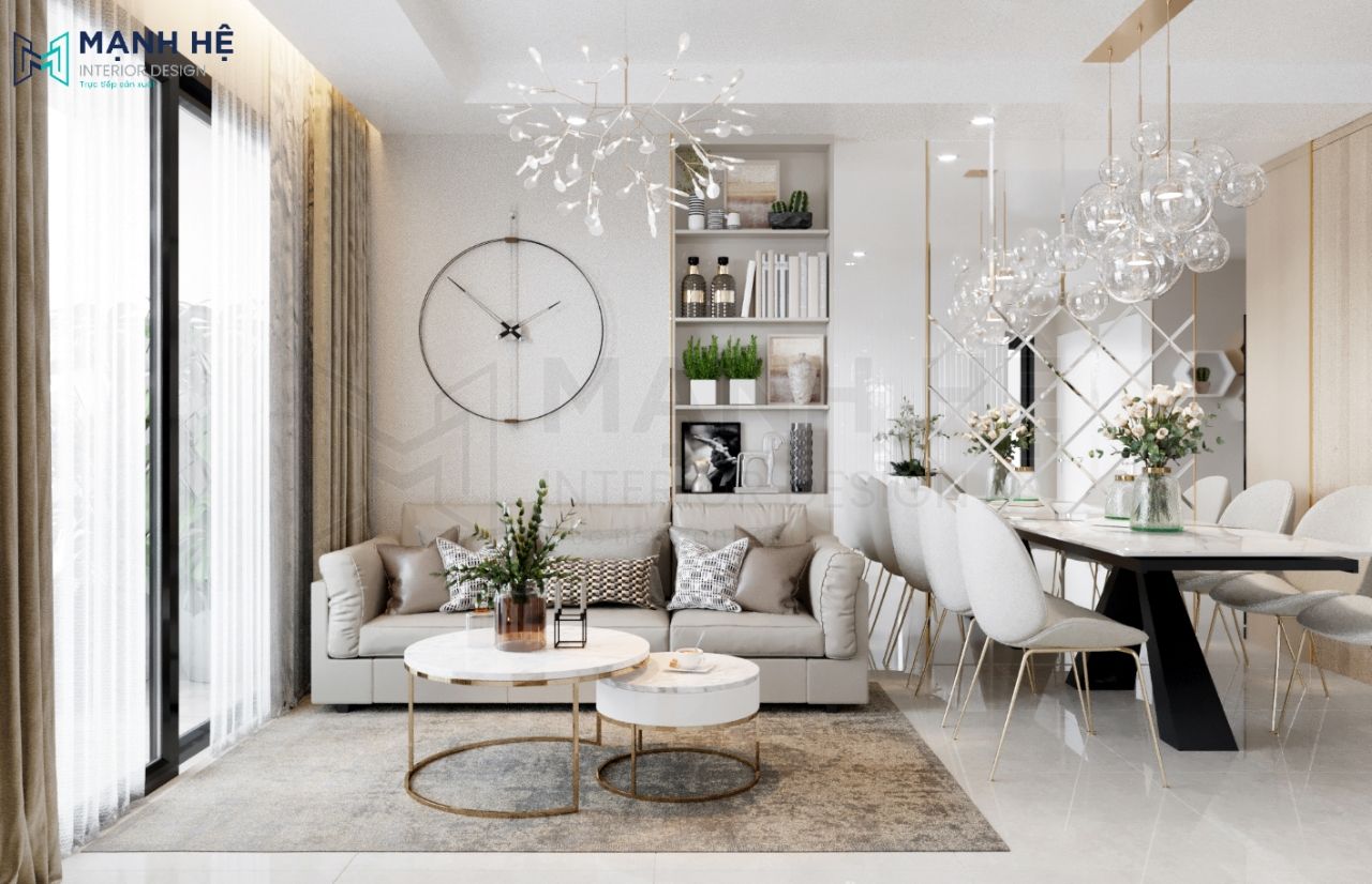 Phá vỡ giới hạn, tự do thể hiện sở thích và phong cách riêng của bạn là những gì được thể hiện trong bản thiết kế nội thất căn hộ chung cư Gold View của gia đình chị Thủy. Với gam màu trắng chủ đạo sẽ làm không gian trở nên tinh tế hơn, nhưng sẽ có cảm giác hơi lạnh một chút. Chính vì vậy, các chuyên gia thiết kế Mạnh Hệ đã điểm thêm những gam màu vàng gỗ ấm áp, tạo sự cân bằng nhiệt độ cho tổ ấm gia đình.