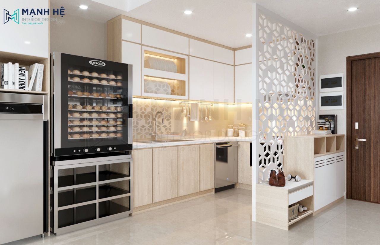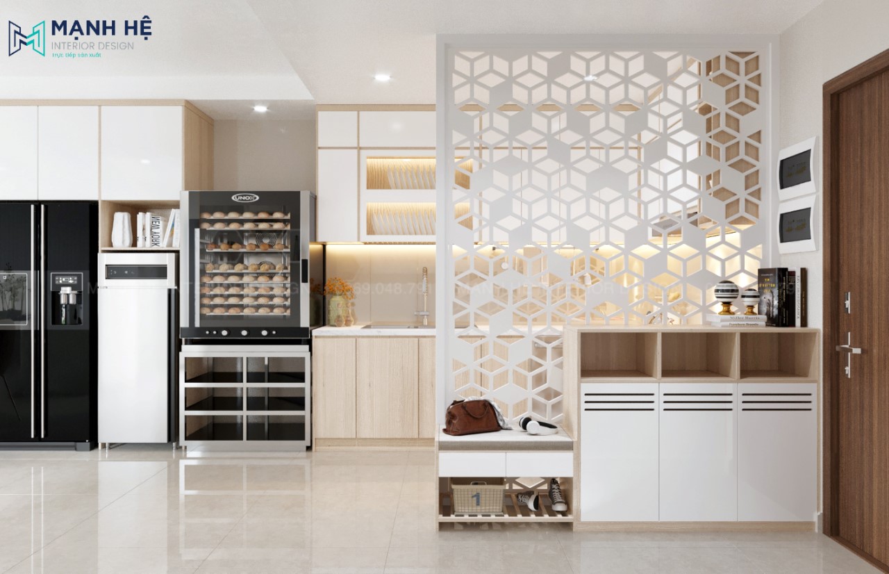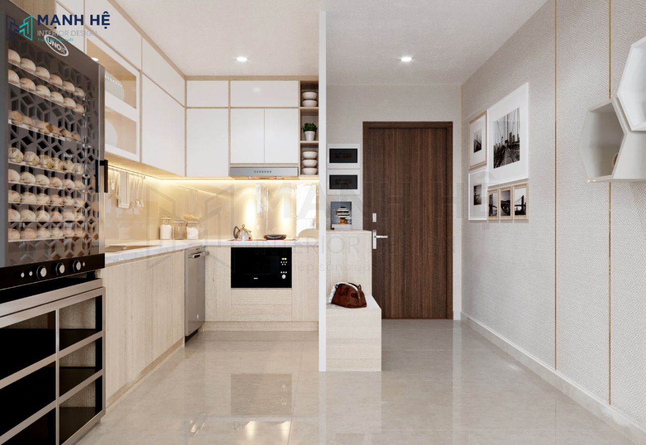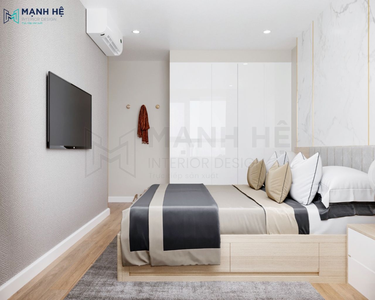 Phá vỡ giới hạn, tự do thể hiện sở thích và phong cách riêng của bạn là những gì được thể hiện trong bản thiết kế nội thất căn hộ chung cư Gold View của gia đình chị Thủy. Với gam màu trắng chủ đạo sẽ làm không gian trở nên tinh tế hơn, nhưng sẽ có cảm giác hơi lạnh một chút. Chính vì vậy, các chuyên gia thiết kế Mạnh Hệ đã điểm thêm những gam màu vàng gỗ ấm áp, tạo sự cân bằng nhiệt độ cho tổ ấm gia đình.