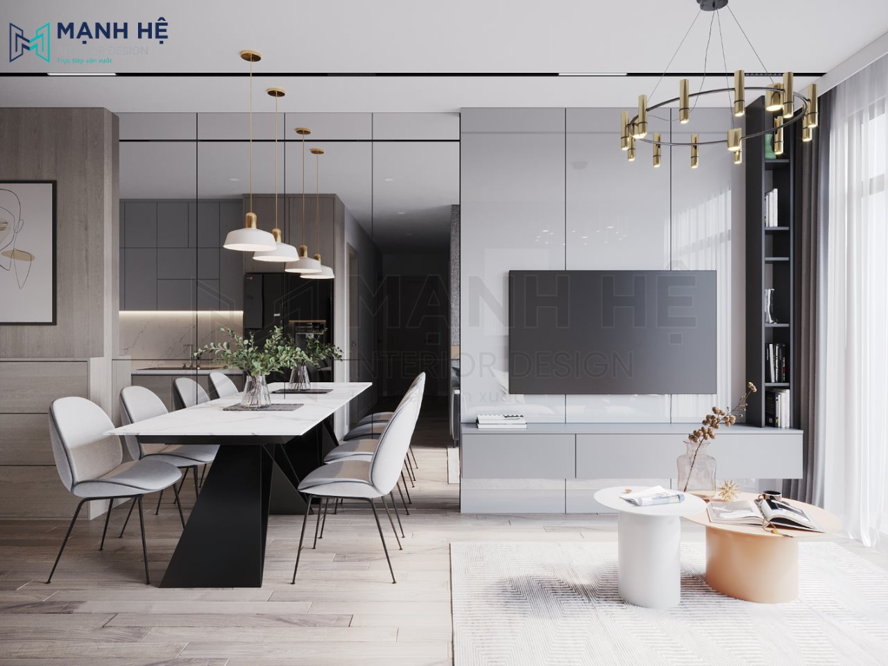 Mạnh Hệ tự hào vì thêm một lần nữa trở thành đơn vị thiết kế và thi công nội thất căn hộ chung cư Vinhomes Grand Park 81m2 – 3PN theo phong cách hiện đại, tiện nghi, mang đến không gian sống thêm trọn vẹn và hoàn mỹ cho gia đình chị Huyền.