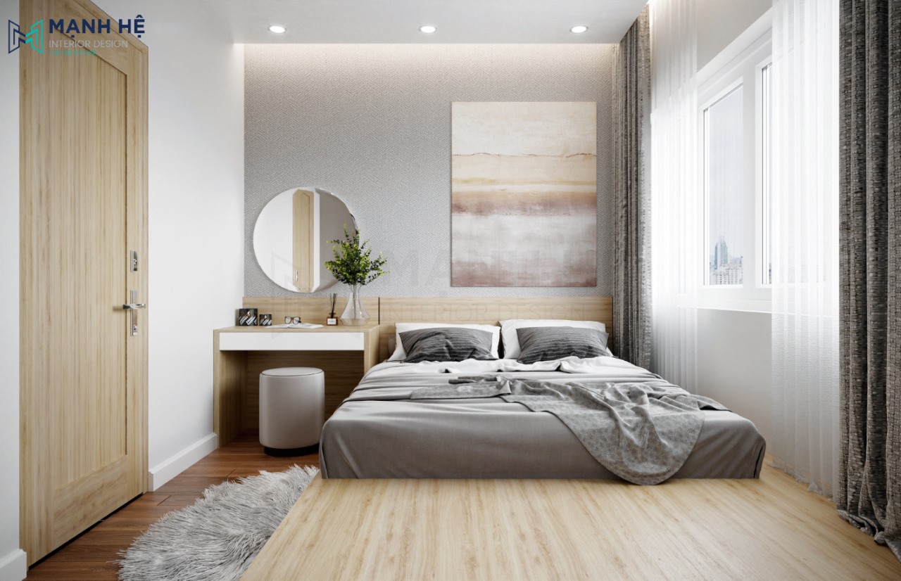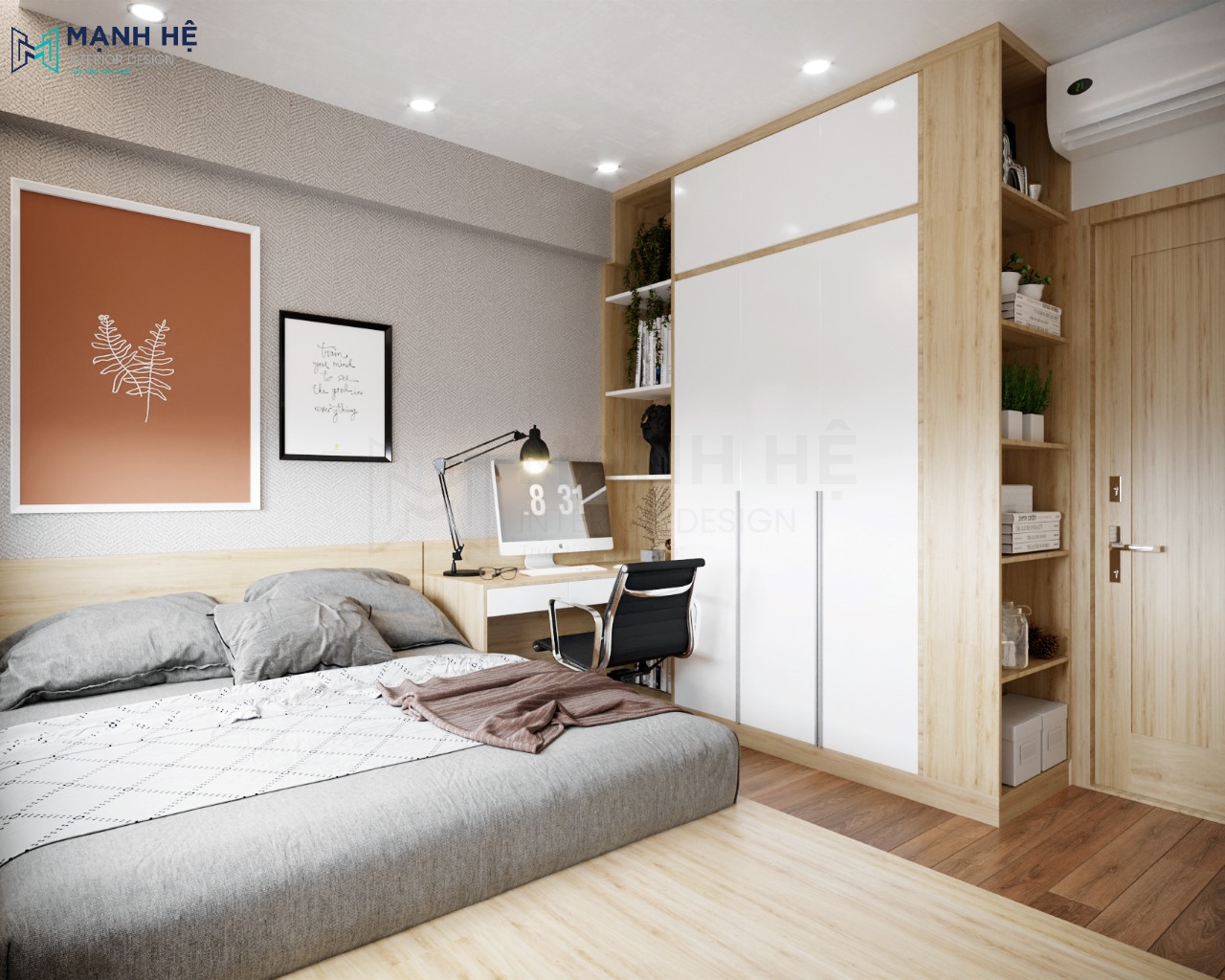 Tùy nhu cầu mà gia chủ sẽ chọn các thiết kế phòng ngủ khác nhau. Với căn 72m2 này, chị Kim chọn thiết kế phòng ngủ hiện đại, đầy đủ tiện nghi để nâng cao không gian nghỉ ngơi sau ngày dài làm việc mệt mỏi cho gia đình chị.