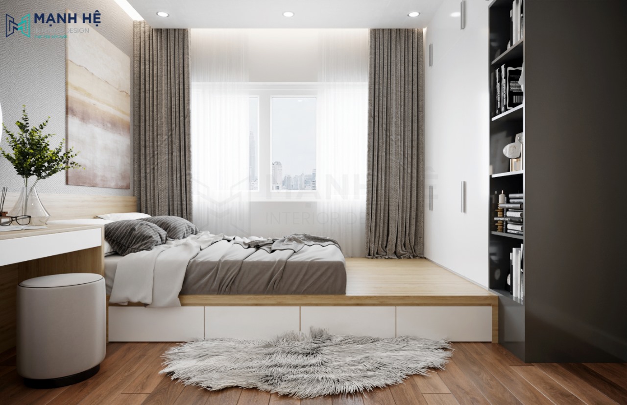 Giường ngủ dạng bục tiết kiệm diện tích giúp gia chủ có thêm không gian để đồ