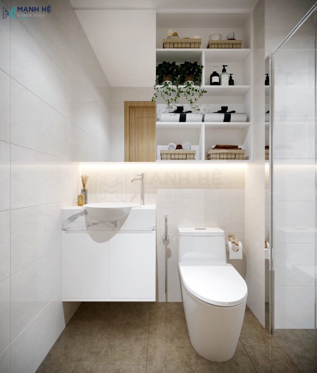 Thiết kế nhà vệ sinh đơn giản màu trắng sạch sẽ