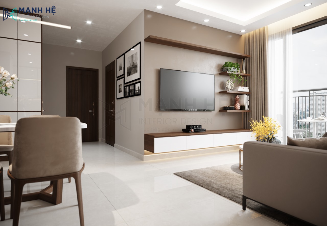 Dự án chung cư Eco Green Arylic Sài Gòn Quận 7 là tổ hợp thương mại, dịch vụ, khách sạn và nhà ở cao cấp, tọa lạc tại vị trí đắc địa với hệ thống tiện ích nội khu đẳng cấp, trang thiết bị nội thất cao cấp cho đến môi trường sống xanh an lành. Tiện nghi trên đã thôi thúc chị Hòa – chủ căn hộ tìm đến Mạnh Hệ với mong muốn được thiết kế trọn gói cho căn hộ của mình.