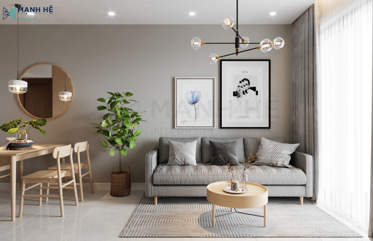 Thiết kế nội thất phòng khách gam màu xám hiện đại trẻ trung