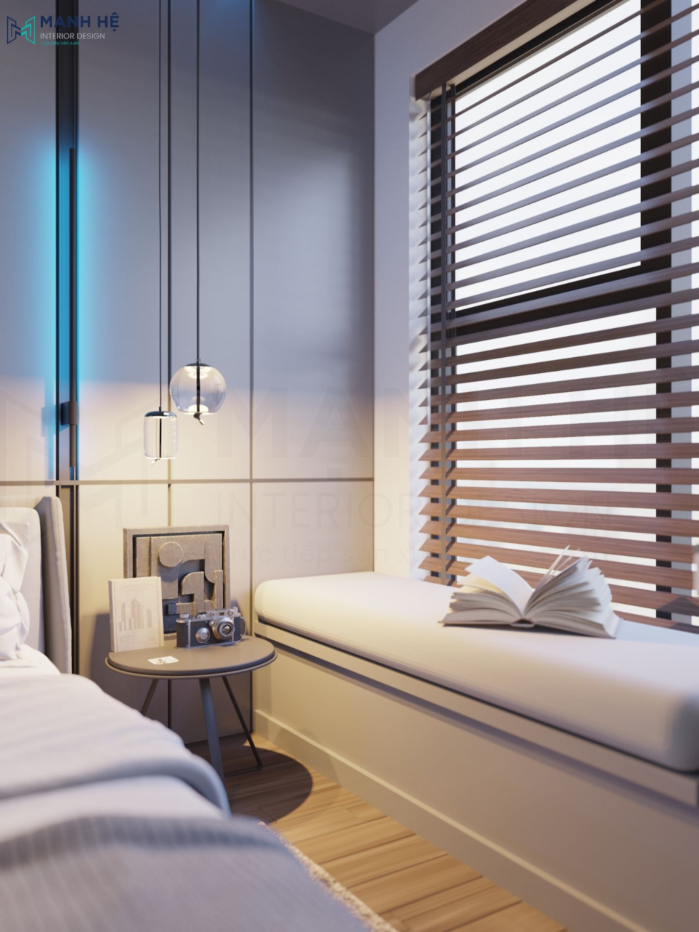 Phía bên trái tab đầu giường là một góc học tập, đọc sách hoặc làm việc nhỏ xinh