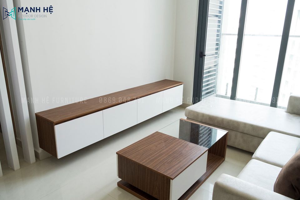 Bước tiếp theo sau khi bàn giao bản vẽ 3D là quá trình sản xuất, thi công hoàn thiện nội thất và thực hiện nghiệm thu công trình. Những sản phẩm làm ra sẽ được bọc 2 lớp kĩ lưỡng, để tránh trày xước, bong tróc trong quá trình vận chuyển đến nhà khách. Công nhân Mạnh Hệ sẽ lắp đặt những chi tiết nội thất như bản vẽ 3D một cách hoàn chỉnh. Hãy cùng xem sản phẩm hoàn thiện nội thất nhà chung cư của chị My thực tế ra sao nhé!
