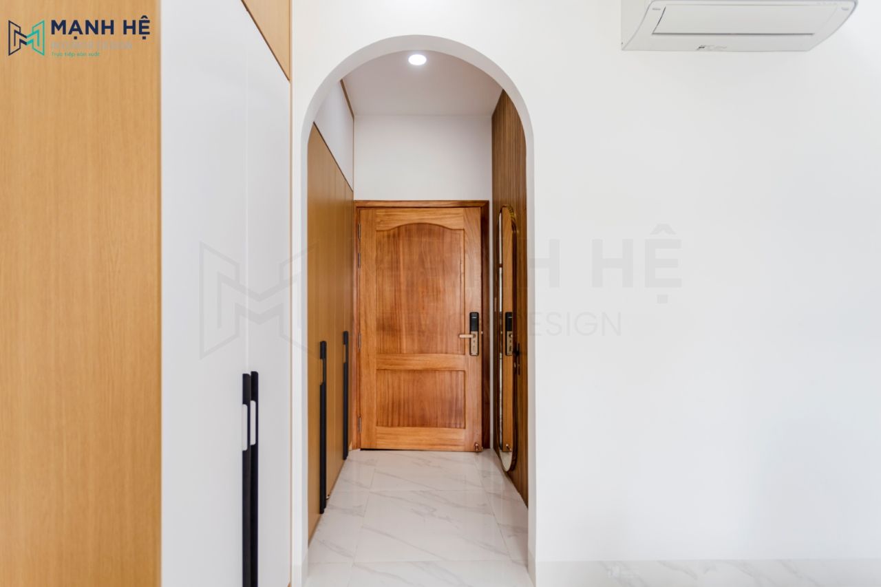 Thi công hành lang vòng cung nhẹ nhàng, thanh tao độc đáo tạo nên không gian mở toàn bộ căn phòng.