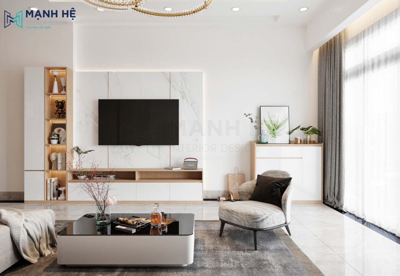 Tổng quan không gian phòng khách căn hộ chung cư đẹp theo phong cách hiện đại
