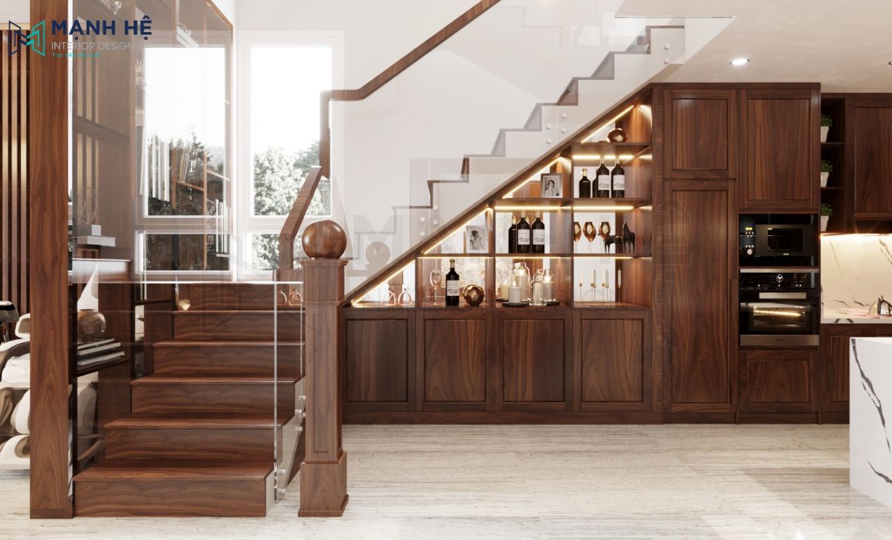 Tủ rượu gầm cầu thang sang trọng thể hiện cá tính của gia chủ