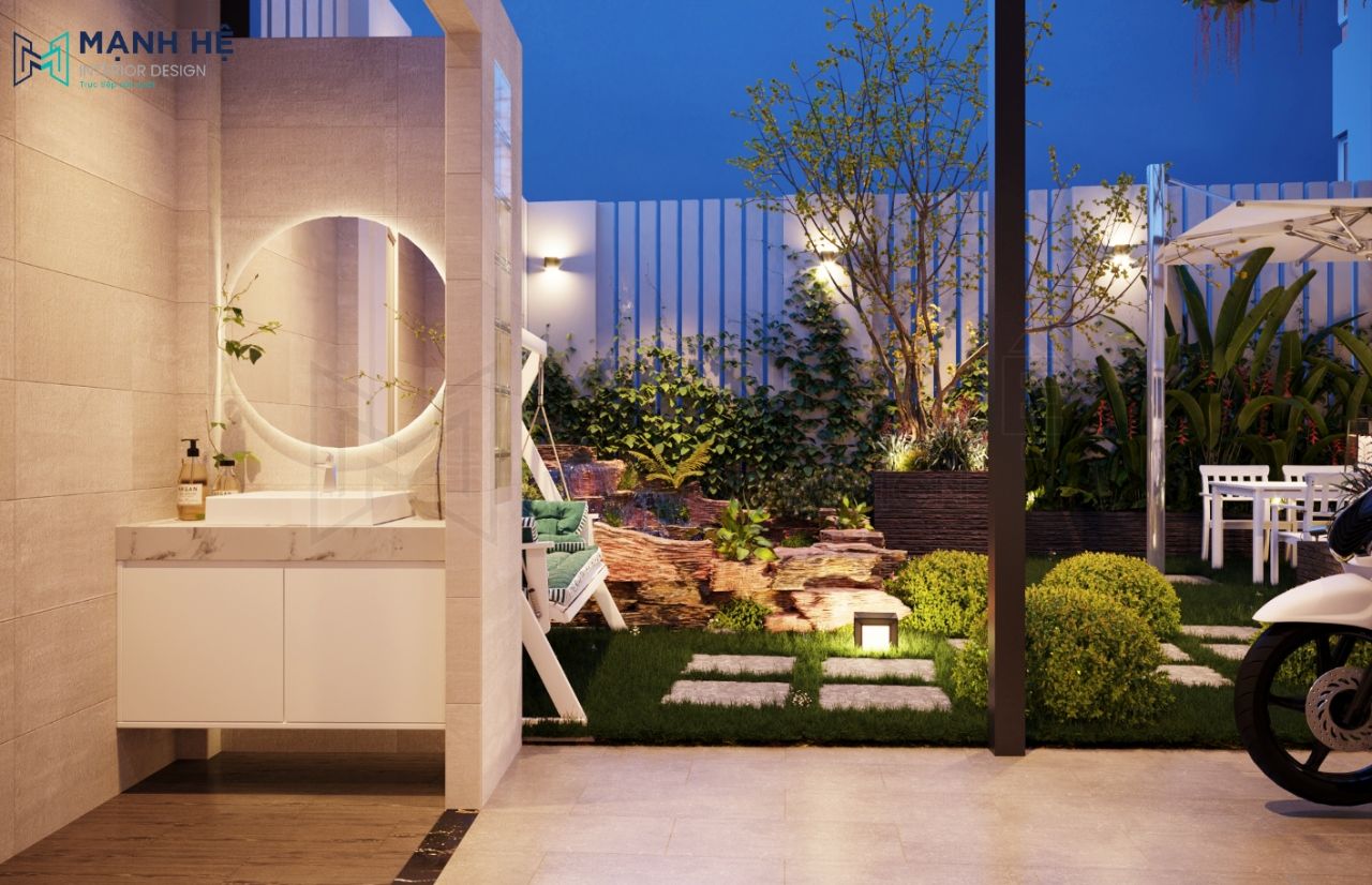 Bố trí lavabo tiện nghi, hiện đại ngay trong sân vườn