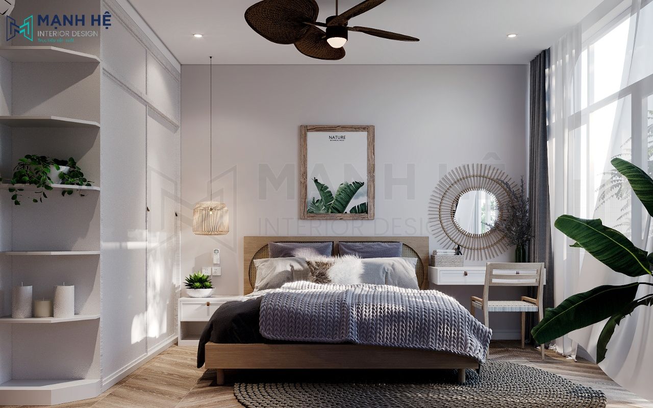 Phòng ngủ master hơi hướng Indochine với nội thất gỗ tự nhiên sang trọng
