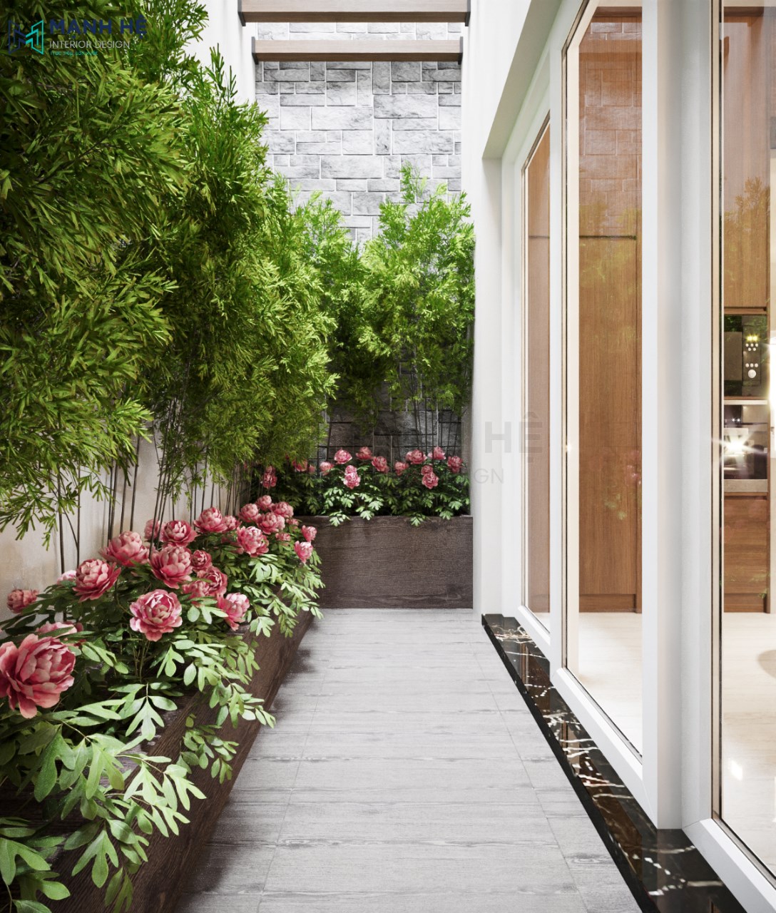 Sân vườn nhỏ bên hông căn nhà được trồng hoa hồng đầy mộng mơ