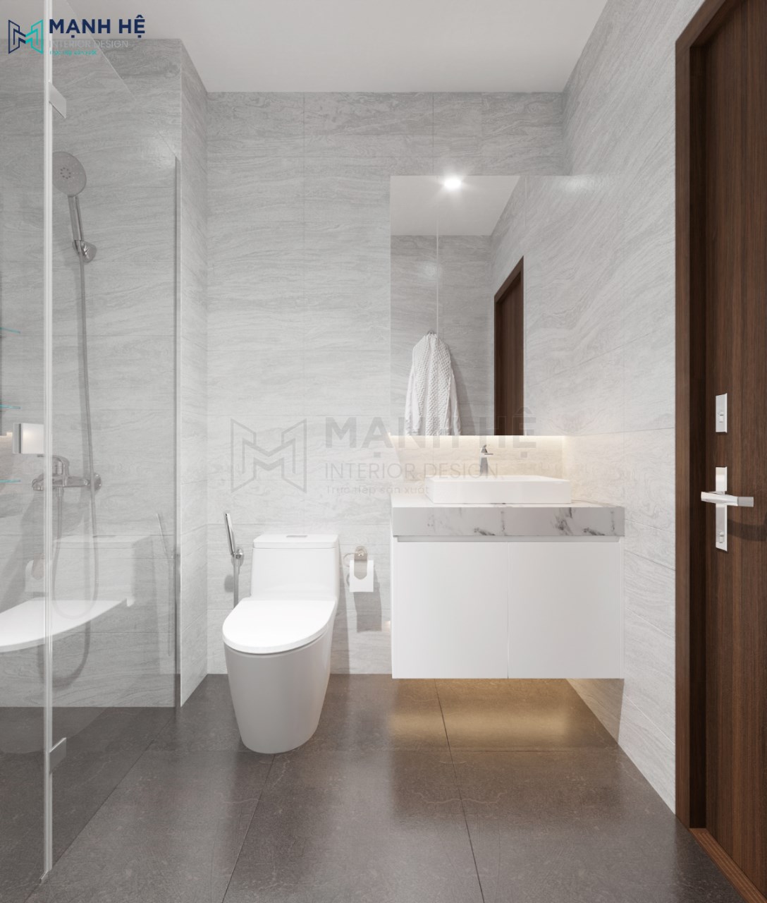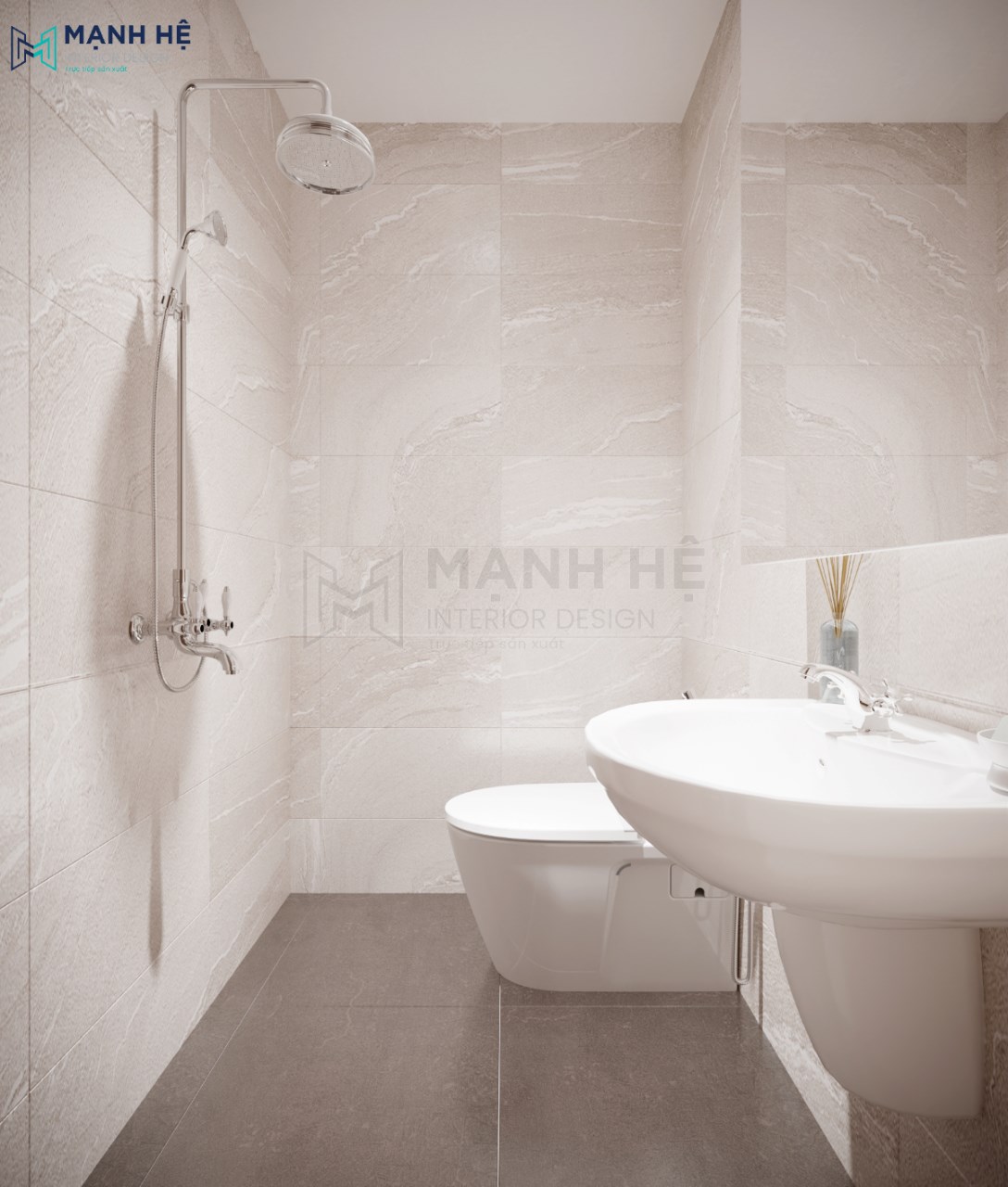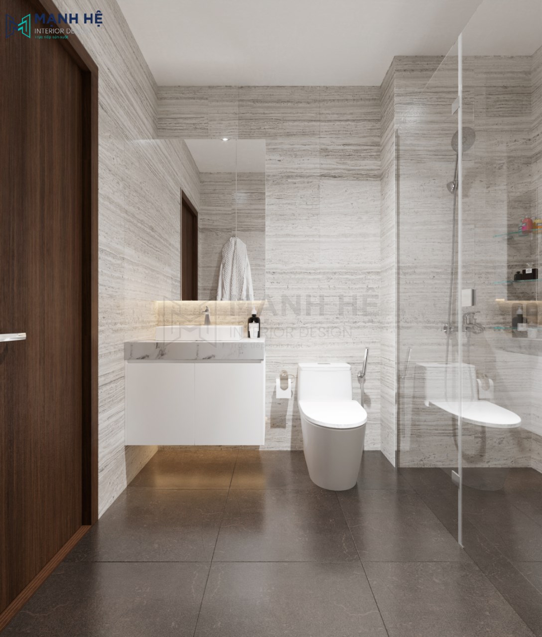 Nhà vệ sinh có phòng tắm đứng đẹp tiện nghi