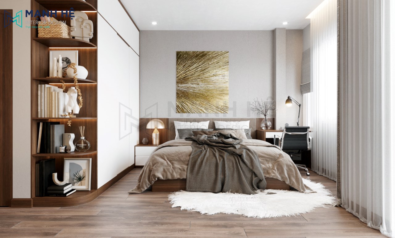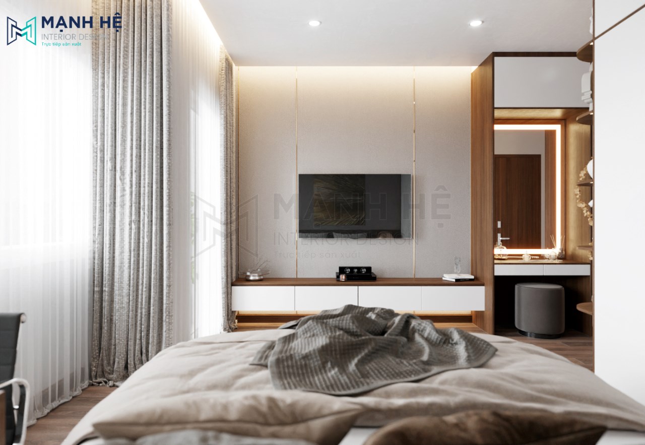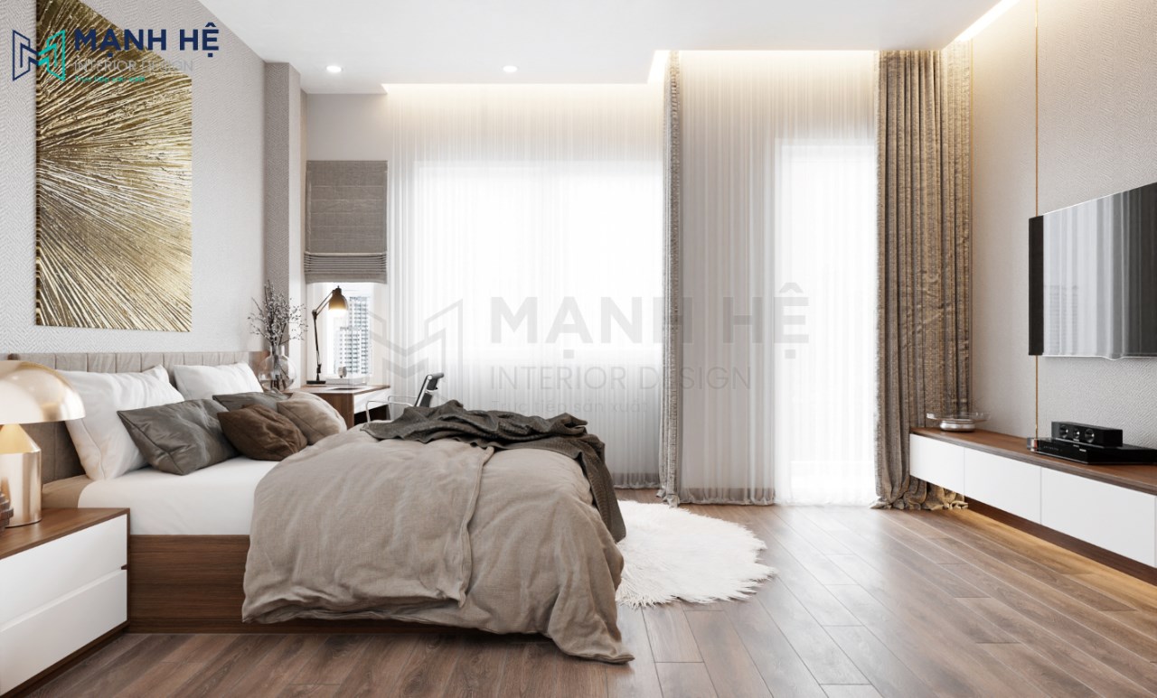 Chị Chuyên lựa chọn lối thiết kế hiện đại, tiện nghi với những gam màu nhẹ nhàng cho phòng ngủ của Gia đình chị. Sau đây là mẫu thiết kế phòng ngủ hiện đại mà KTS Mạnh Hệ đã đặt hết tâm huyết vào đó để có thể mang đến không gian phòng ngủ hoàn mỹ cho gia đình chị.