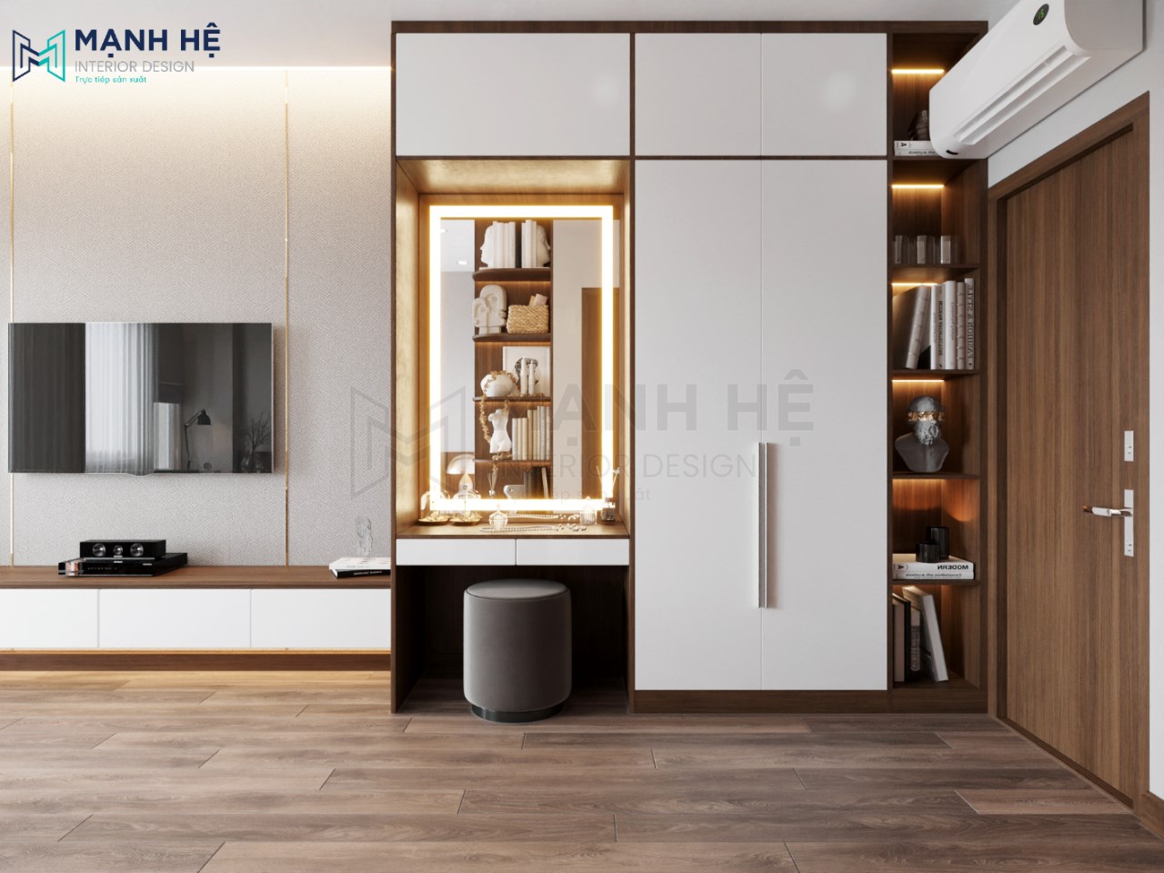 Hệ tủ quần áo kết hợp bàn trang điểm đẹp và sang trọng