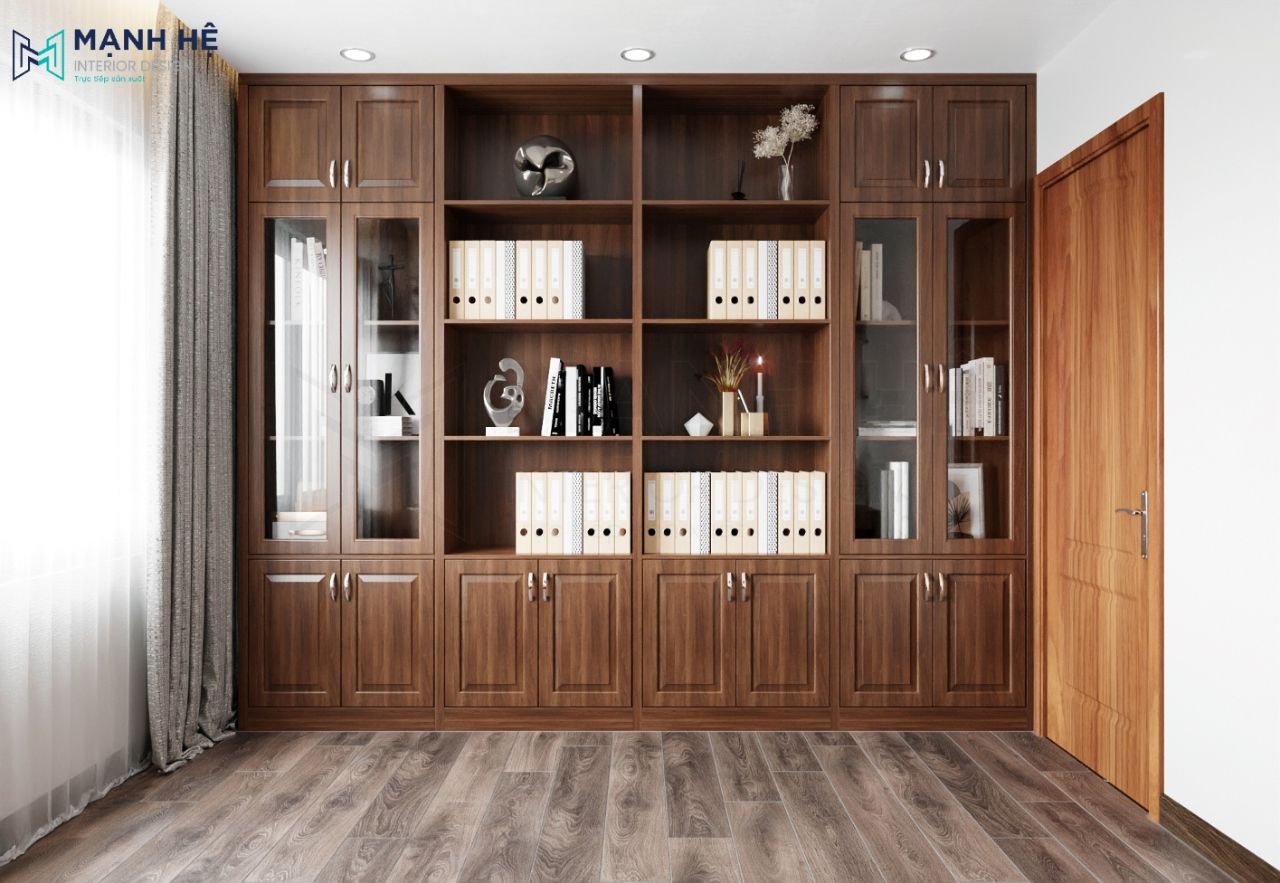 Tủ sách tích hợp thêm kệ để túi sách cho gia chủ nữ