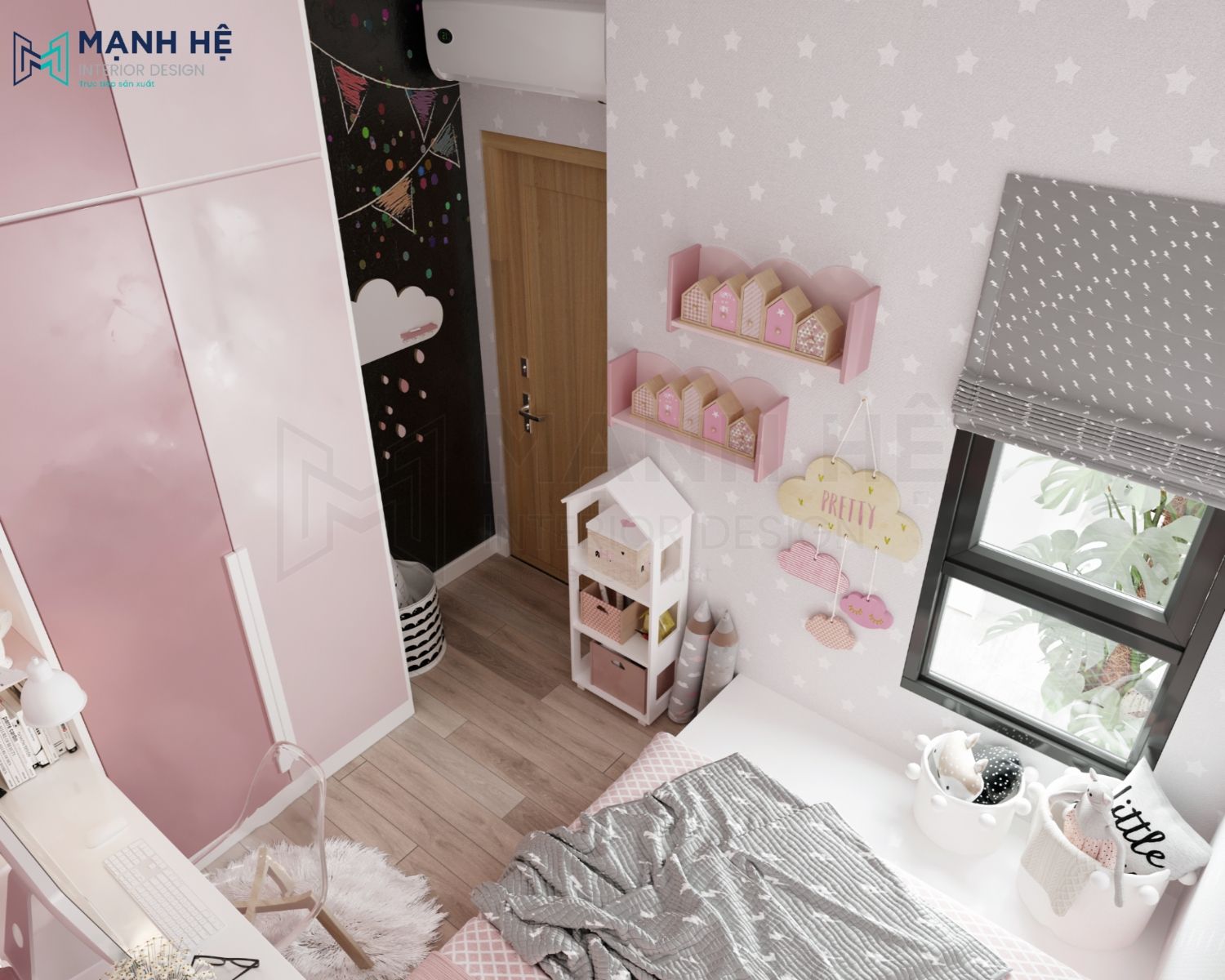 Phòng ngủ là nơi bé tự học tập và phát huy khả năng sáng tạo, vì vậy không gian phòng ngủ cho bé tuy nhỏ, nhưng cần phải tiện nghi và đẹp mắt.