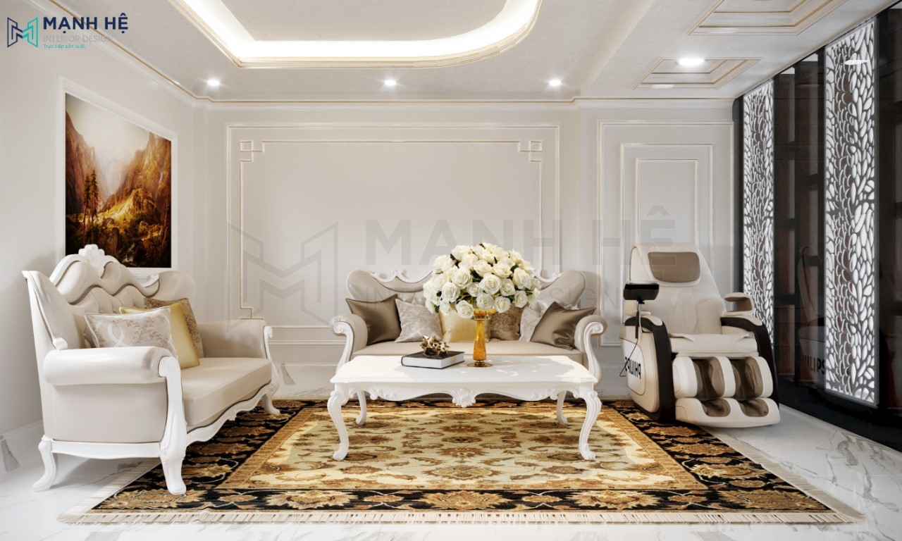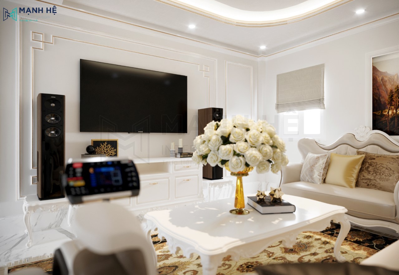 Thiết kế nội thất phòng khách nhà phố sang trọng theo phong cách tân cổ điển