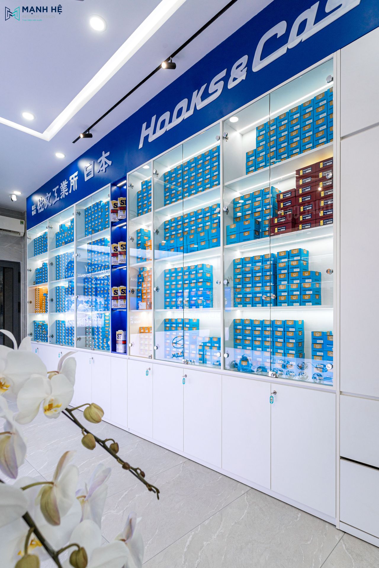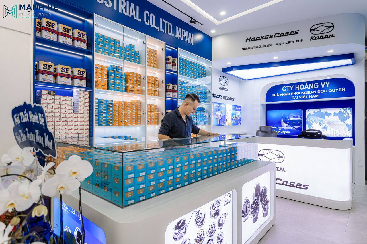 Dự án thi công hoàn thiện showroom Hooks & Cases tại phường Tân Bình cho chị H là minh chứng tiêu biểu cho giải pháp tối ưu không gian nhỏ, giúp cân bằng hoàn hảo giữa công năng trưng bày và tính nhận diện thương hiệu.
