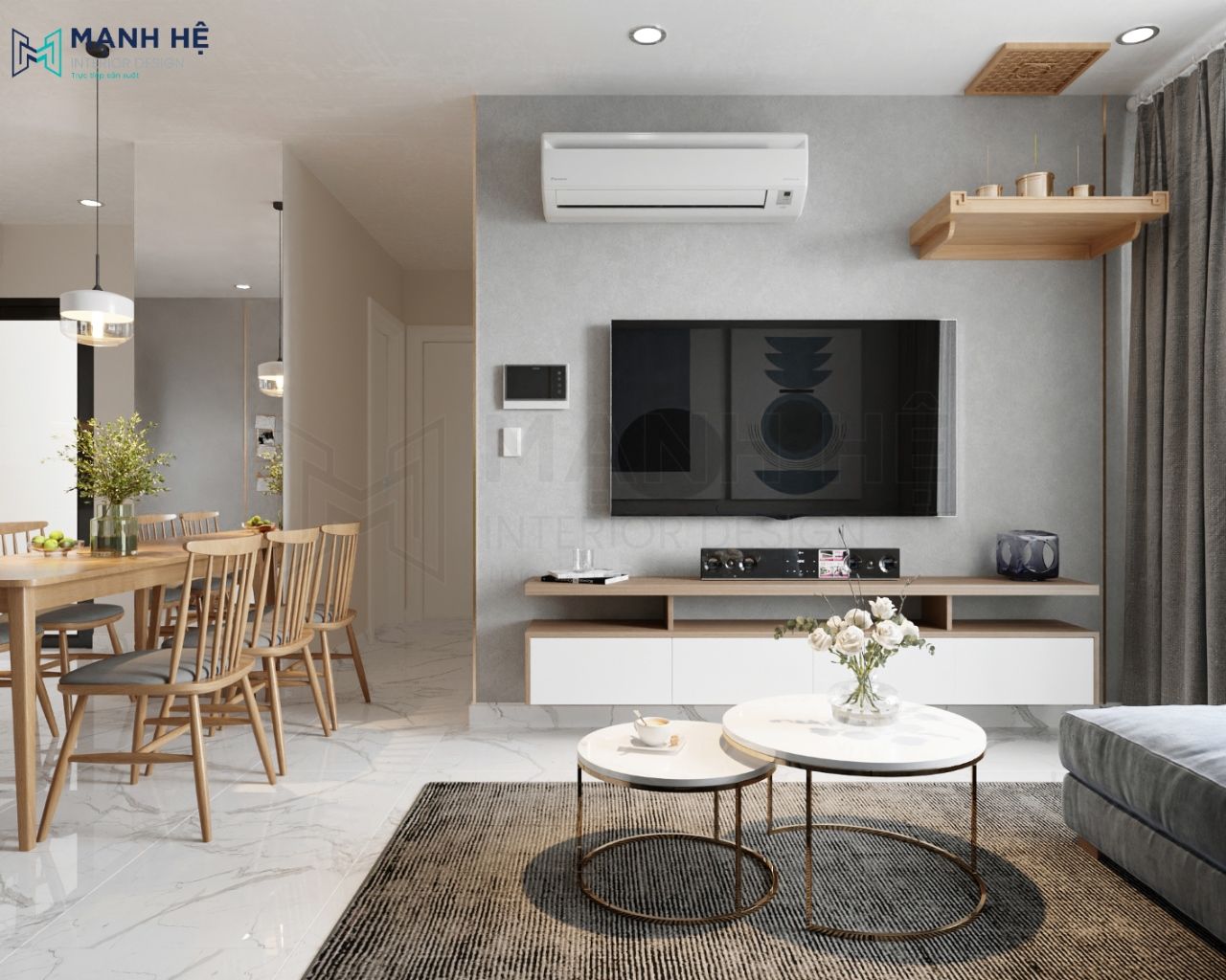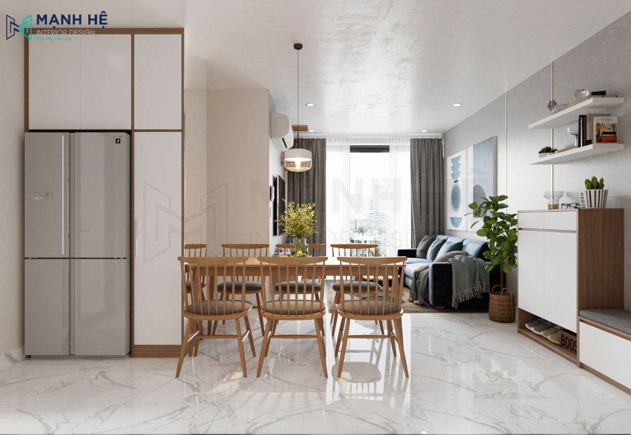 Tiếp tục chuỗi series thiết kế nội thất phòng khách liền bếp đối với những căn hộ có diện tích vừa phải, Mạnh Hệ tự hào vì thêm một lần nữa trở thành đơn vị thiết kế và thi công nội thất căn hộ One Verandah – 70m2 2 phòng ngủ cho chị Trang. Mang ngôi nhà trong mơ ra ngoài đời thực cho gia đình chị là niềm vui lớn của Mạnh Hệ.
