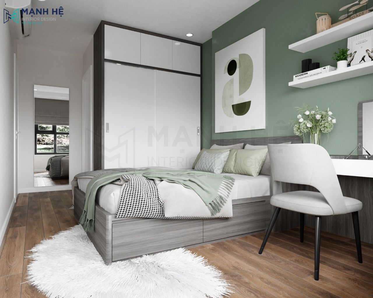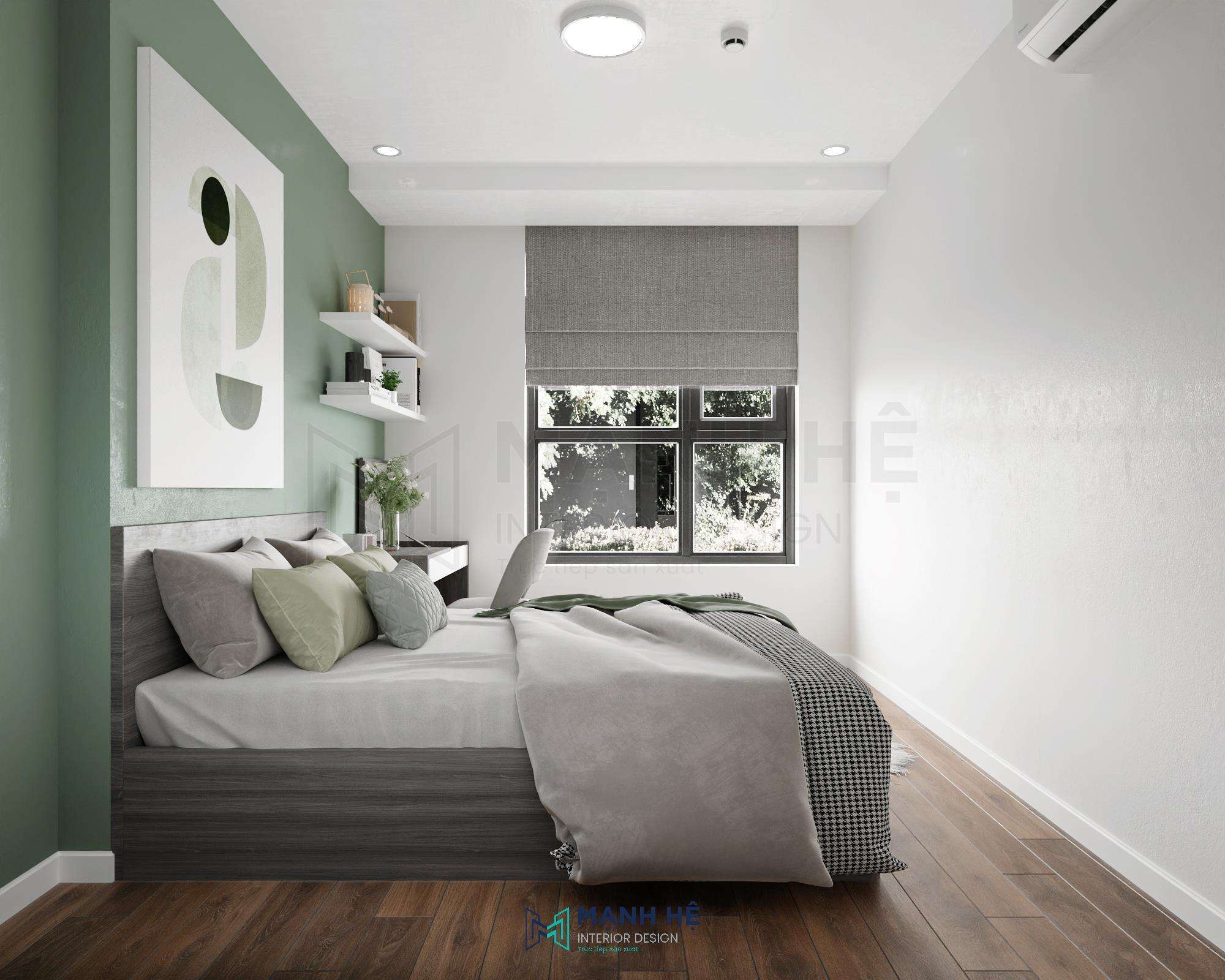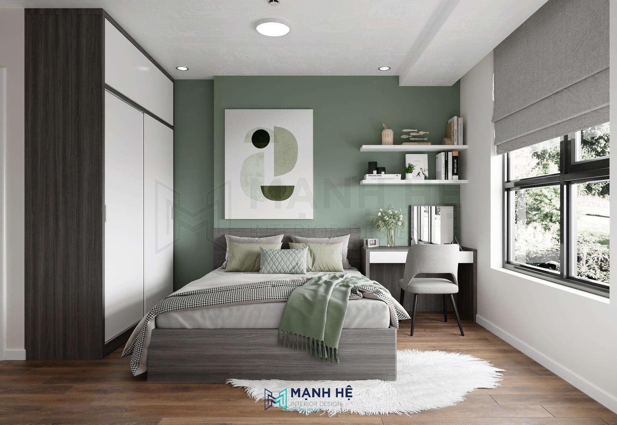 Phòng ngủ thứ 01 với màu xanh lá chủ đạo