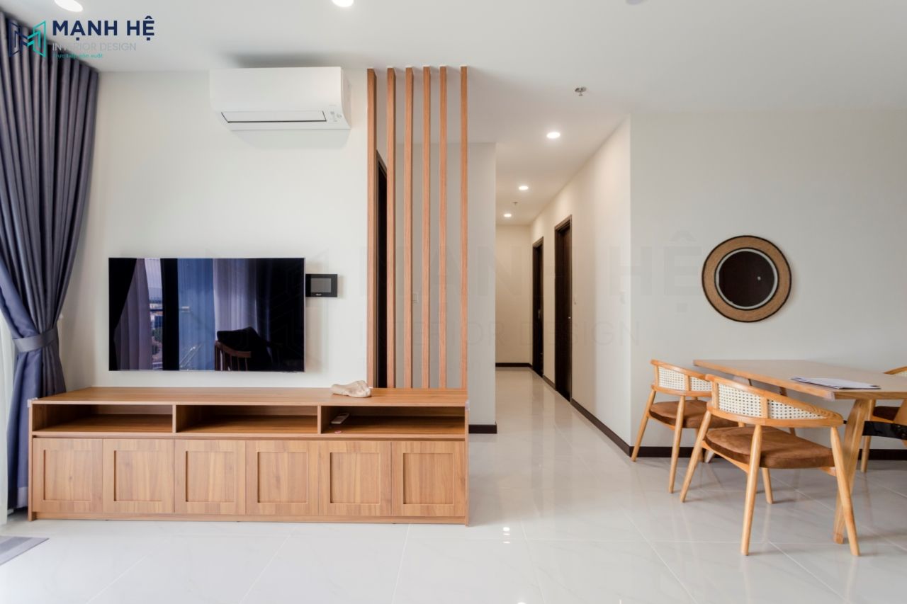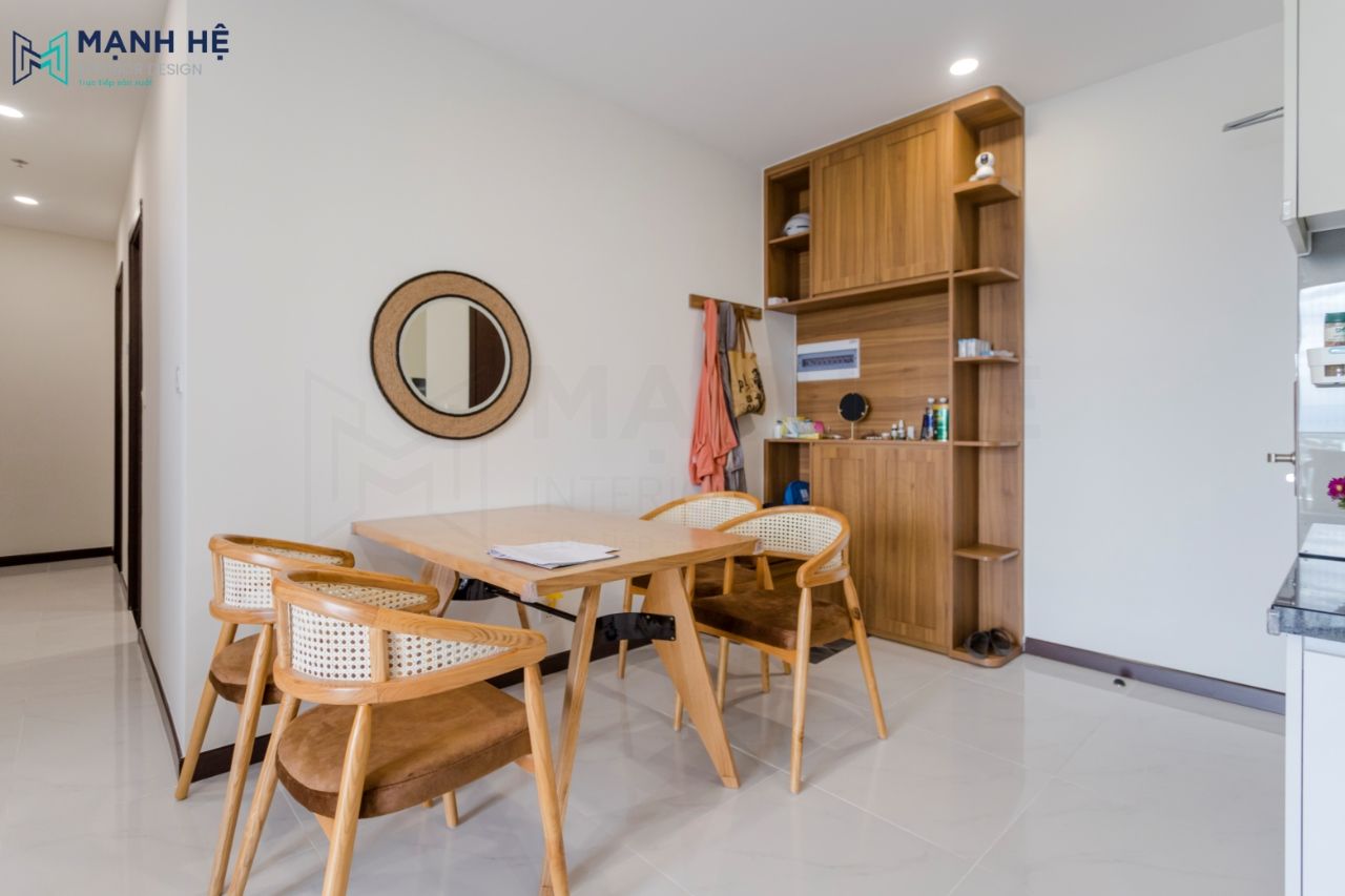 Với sở thích yêu thích tone màu gỗ mộc mạc nên anh đã tìm đến Nội Thất Mạnh Hệ giúp anh thực hiện thi công thiết kế căn hộ với nội thất chuẩn gam màu nâu nhạt của gỗ đúng tính cách và sở thích của anh.