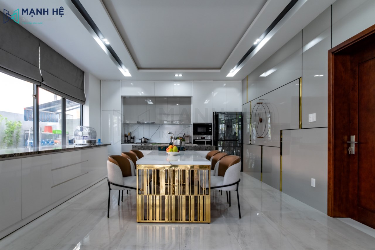 Tổng quan không gian phòng bếp biệt thự sau khi thi công hoàn thiện