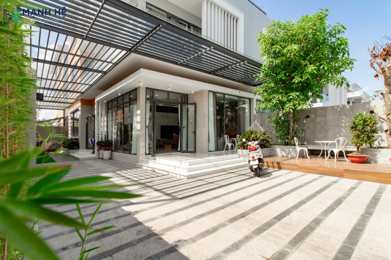 Mặc dù Mạnh Hệ chuyên về thiết kế và thi công nội thất nhà ở nhưng với các khách hàng có nhu cầu thi công cả sân vườn chúng tôi đều hoàn toàn đáp ứng được. Căn biệt thự sử dụng khung sắt với kính trong suốt cho khu sân vườn nhằm tận dụng ánh sáng tự nhiên.