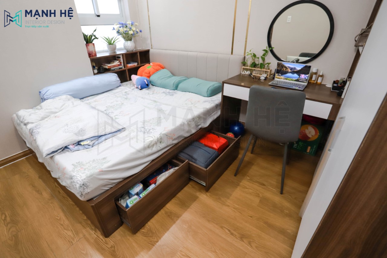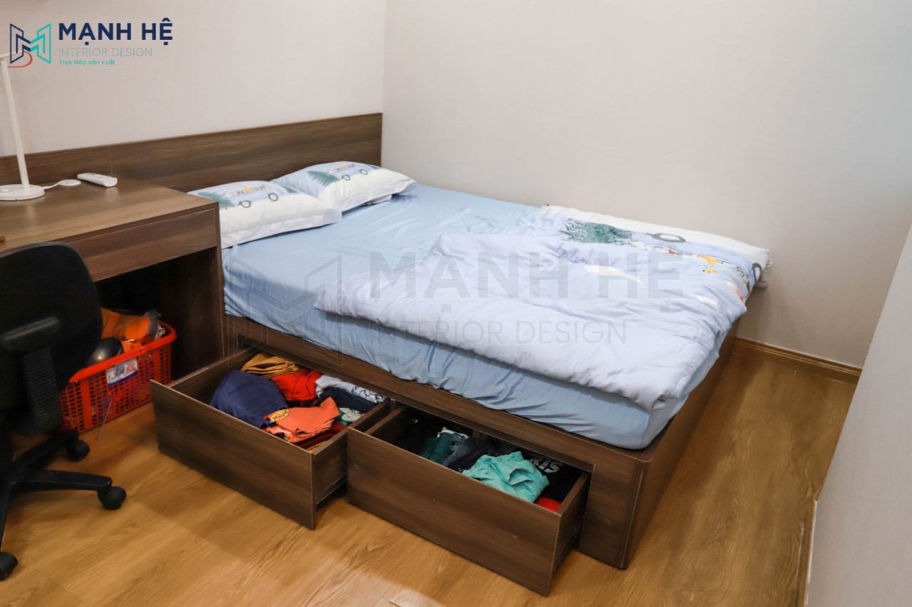 Ngăn chứa hộc kéo rộng lớn giúp gia chủ có thêm nhiều khoảng trống để đồ đạc