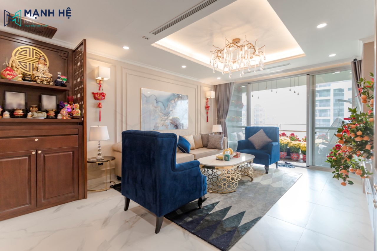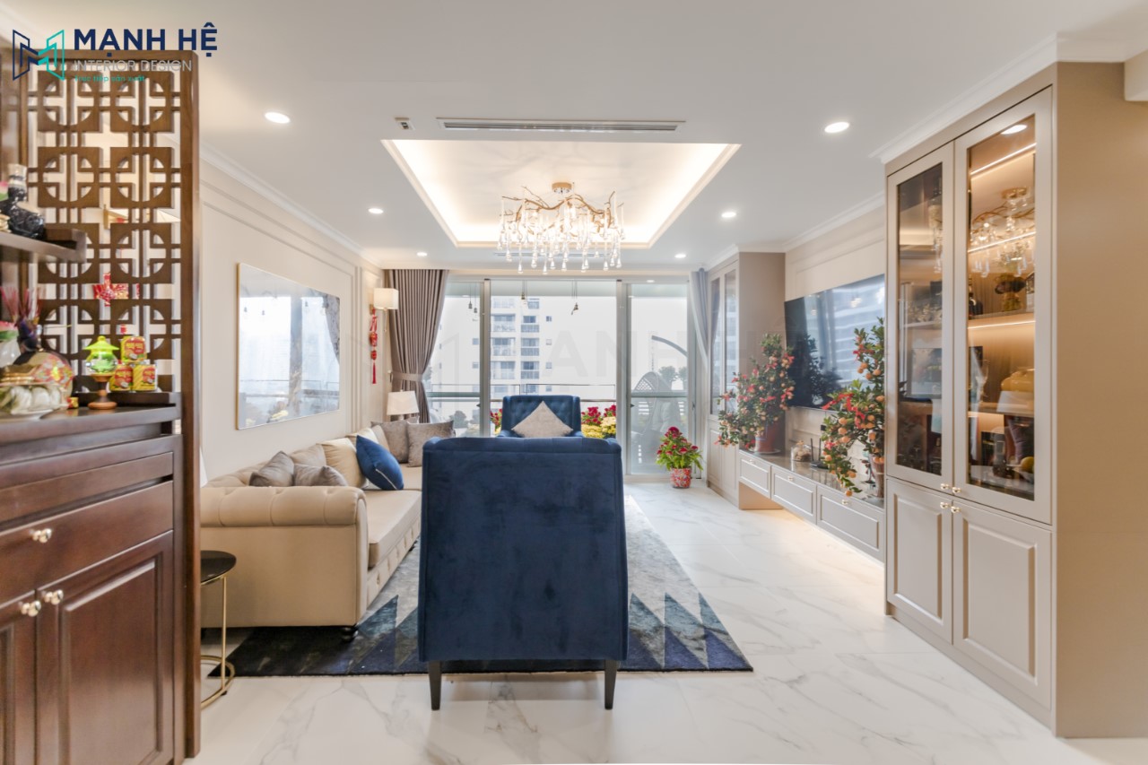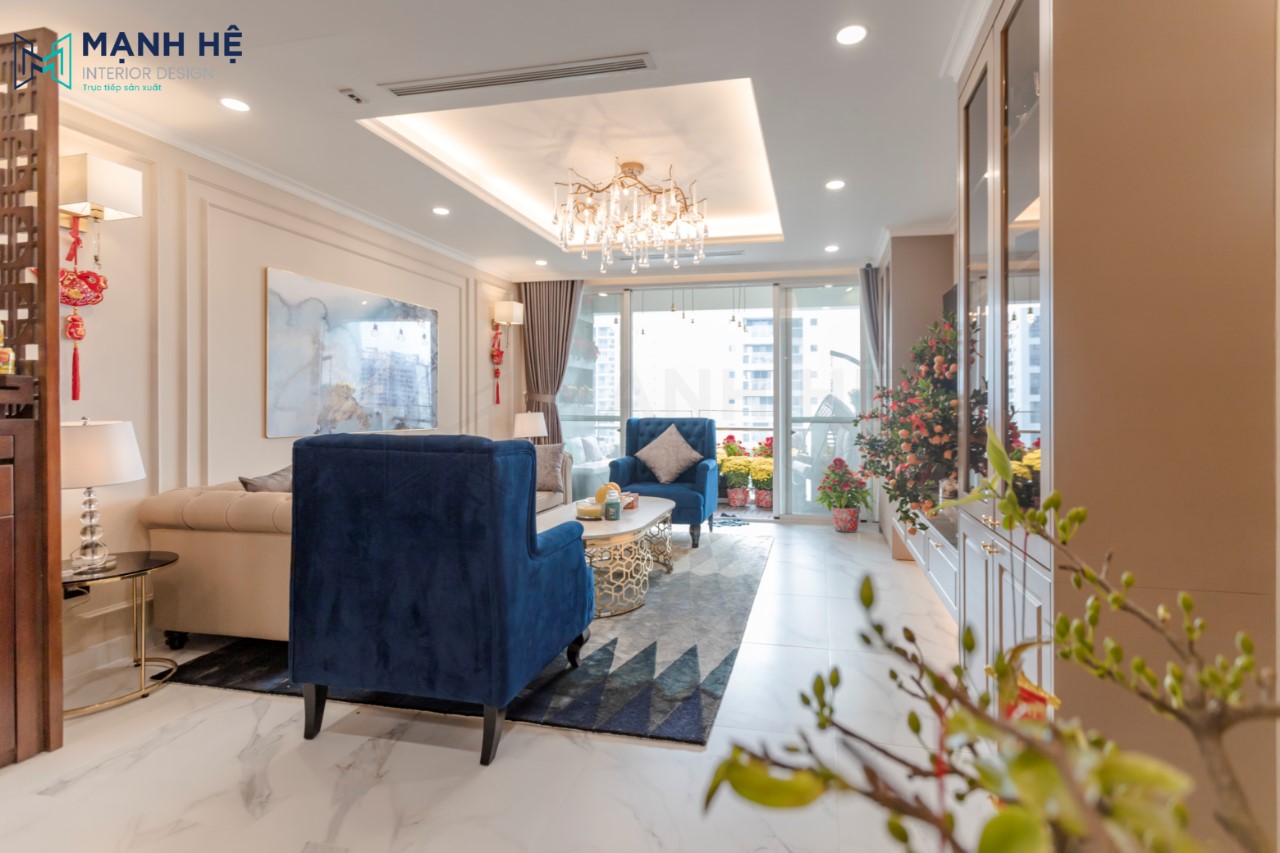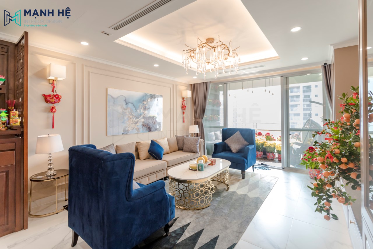 Thi công nội thất phòng khách căn hộ chung cư phong cách luxury
