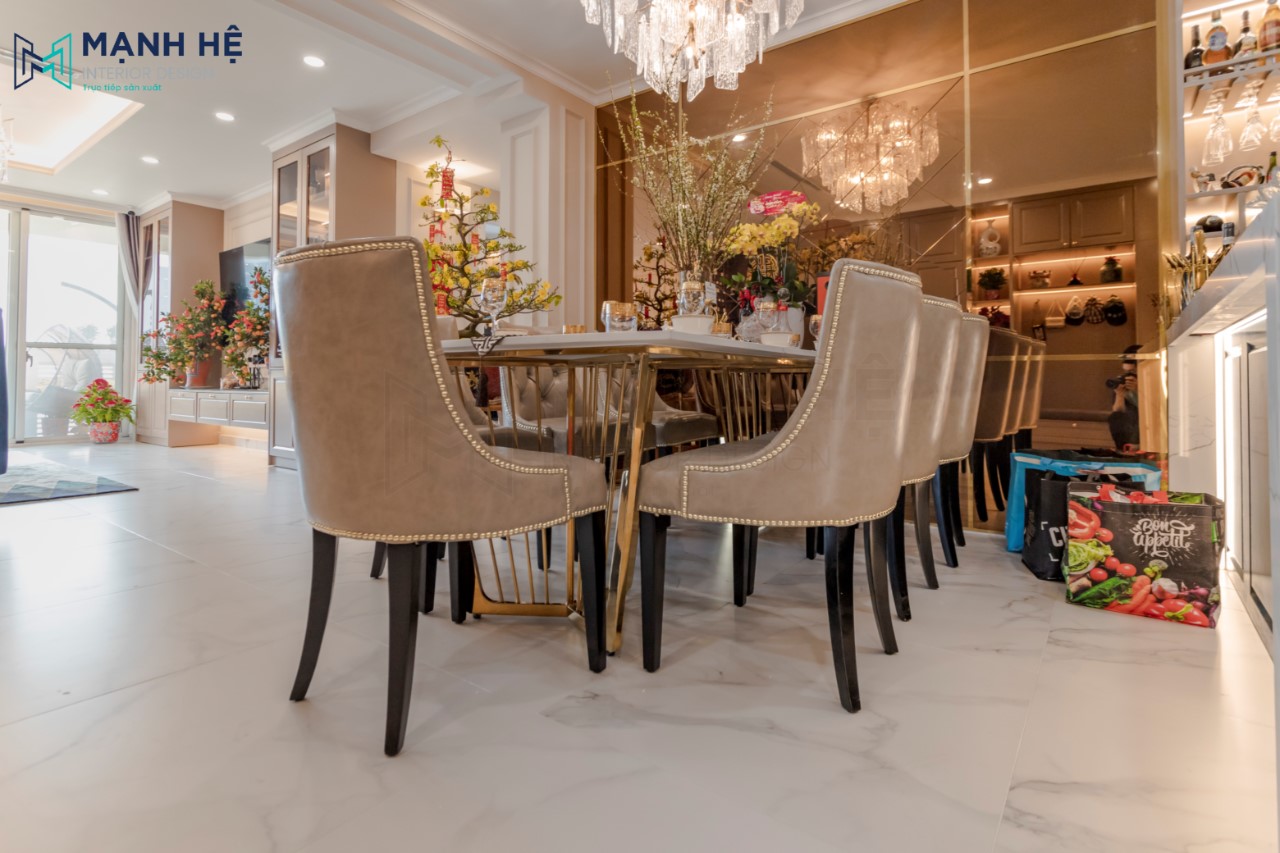 Bộ bàn ăn 7 ghế được lựa chọn theo phong cách tân cổ điển sang trọng