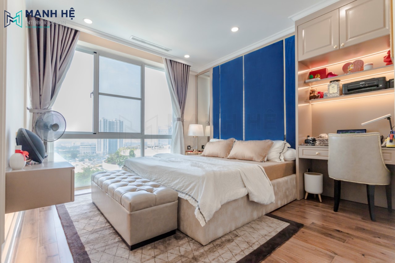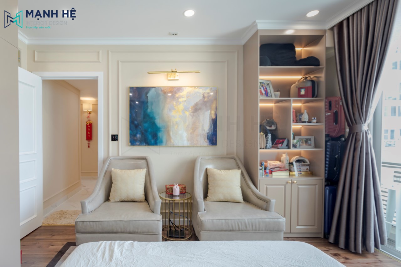 Với diện tích 135m2, gia chủ đã quyết định nhờ Mạnh Hệ thiết kế 1 phòng ngủ master kết hợp phòng thay đồ và 1 phòng ngủ nhỏ, đem lại không gian nghỉ ngơi, sinh hoạt, thư giãn cho các thành viên trong gia đình.