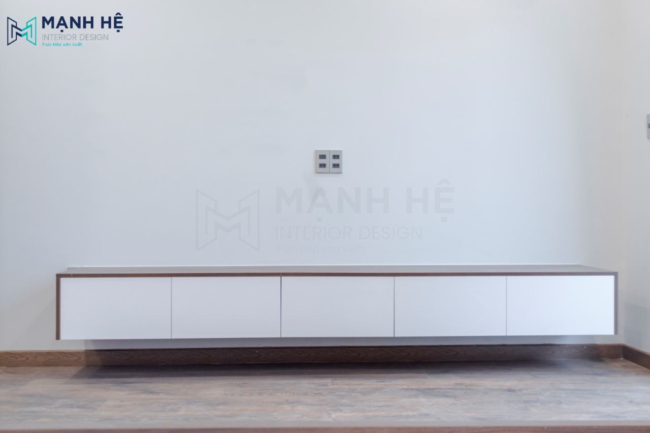Tủ kệ tivi gỗ công nghiệp thi công treo tường giúp tiết kiệm diện tích