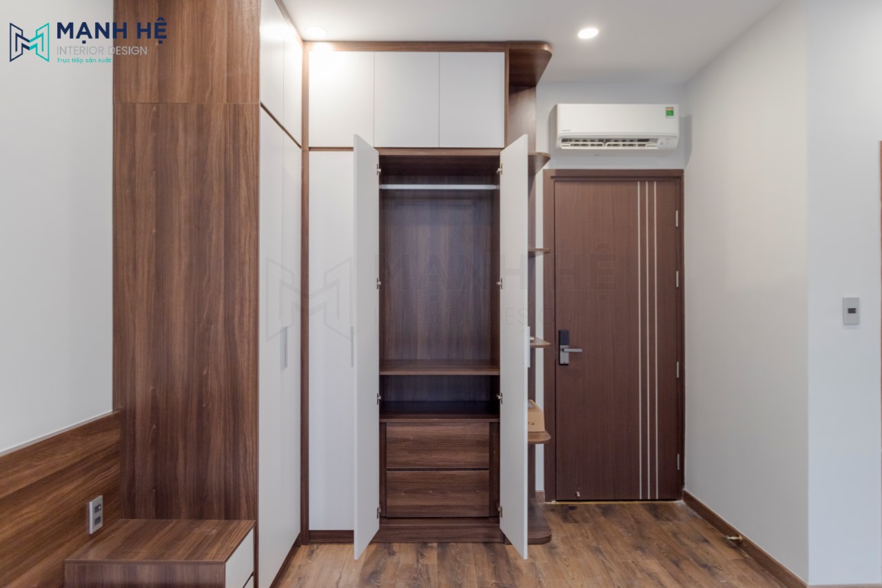 Thi công tủ quần áo gỗ công nghiệp với nhiều ngăn hộc tủ rộng rãi