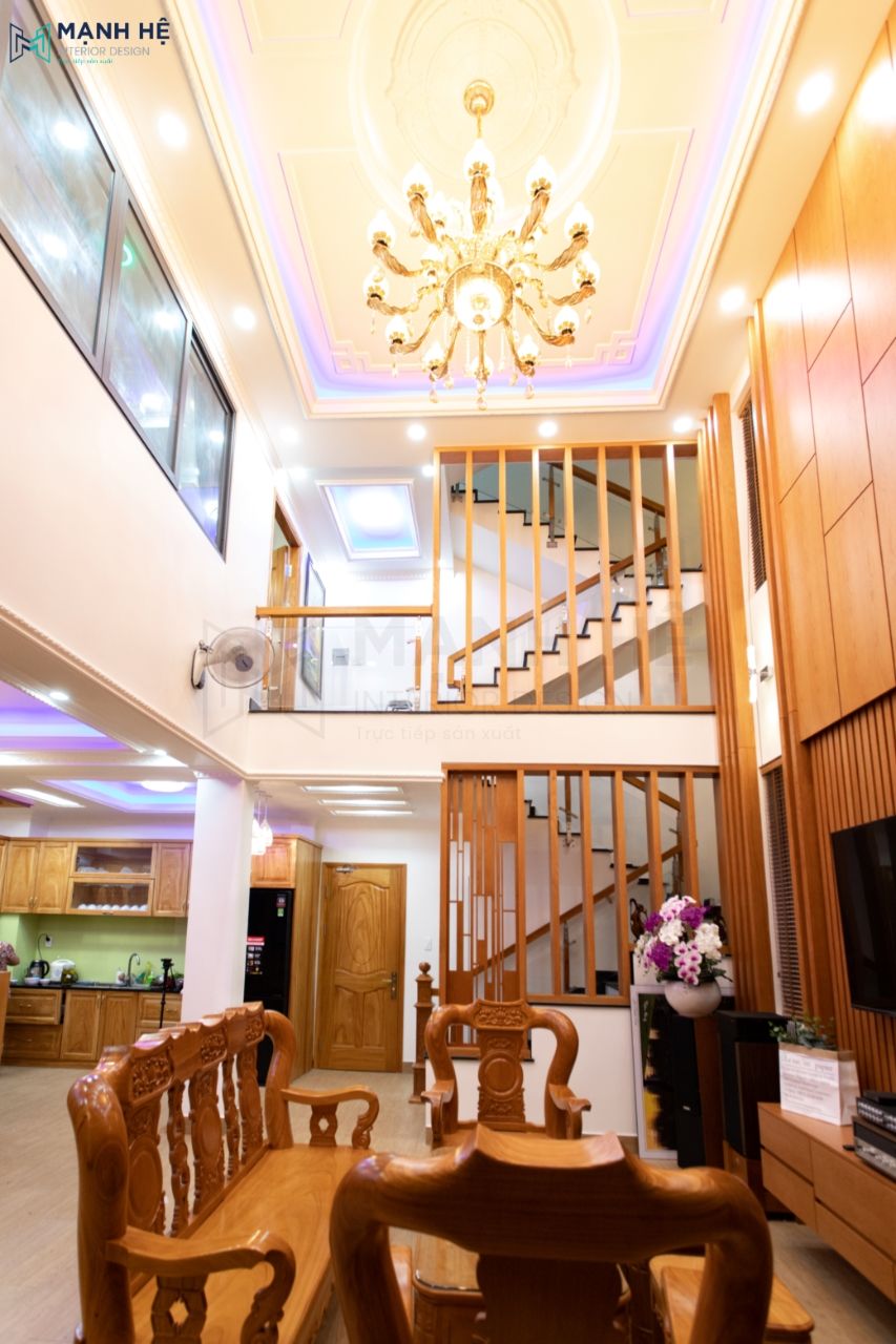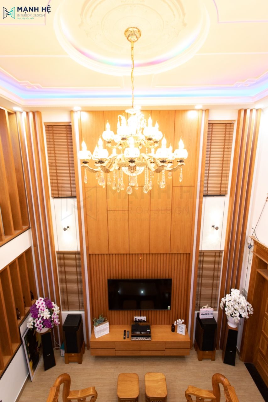 Toàn cảnh không gian phòng khách nhà anh Hưng sau khi thi công hoàn thiện