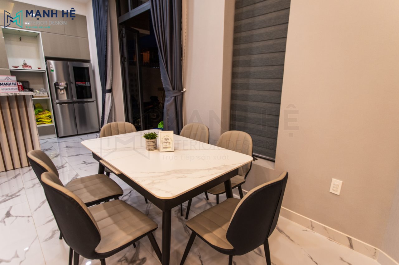 Bàn ăn hiện đại với thiết kế đơn giản, tinh tế nhưng có sức chứa lên đến 6 người cho cả gia đình bạn có thể quây quần ăn cơm bên nhau