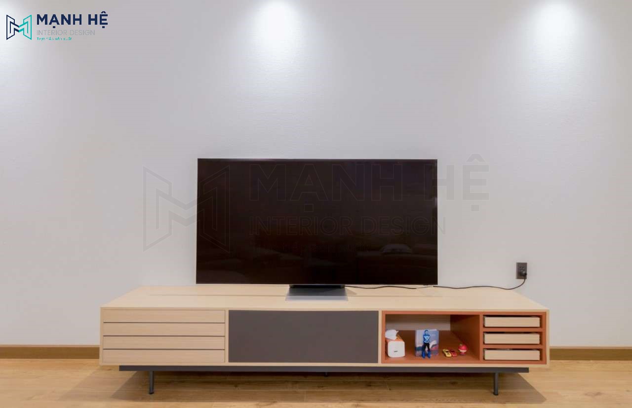 Tủ tivi gỗ công nghiệp đơn giản nhưng ngăn cách ngăn kéo độc đáo