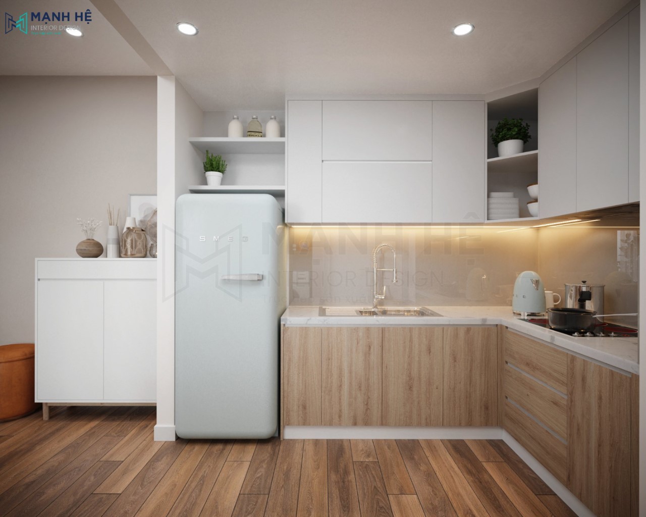 Hệ tủ bếp chữ L đụng trần tối ưu diện tích căn hộ nhỏ trở nên tiện nghi