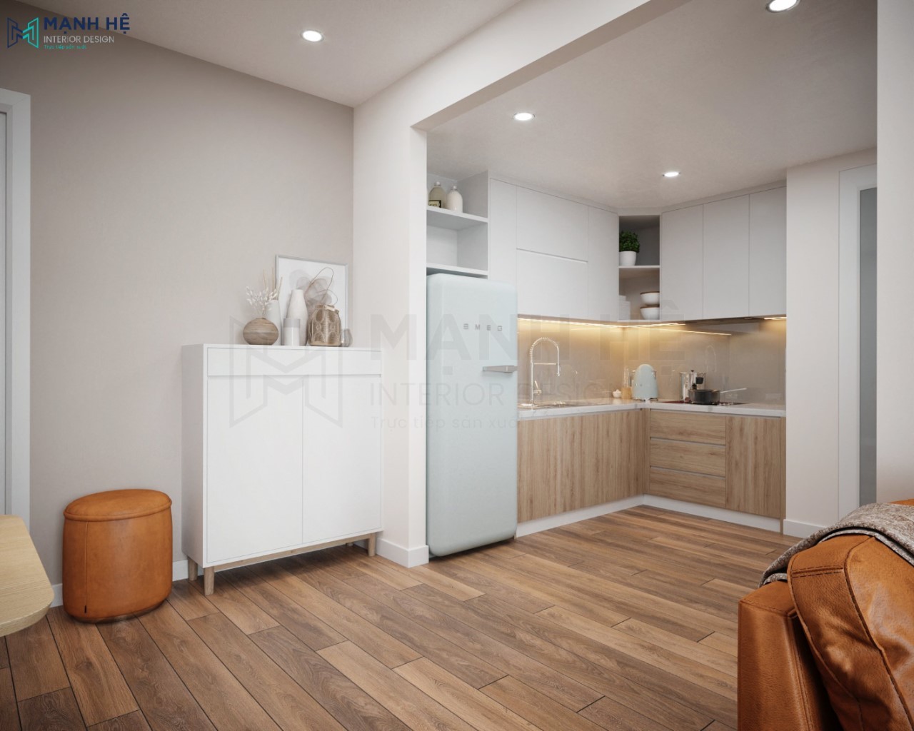Mạnh Hệ tự hào là đơn vị thiết kế và thi công nội thất uy tín khi đã thành công trong việc khắc họa một không gian sống giàu trải nghiệm với ý tưởng biển xanh, cát trắng, nắng vàng cho căn hộ Căn hộ 52m2 – căn hộ 1 phòng ngủ đúng với tinh thần của chung cư Carillon.