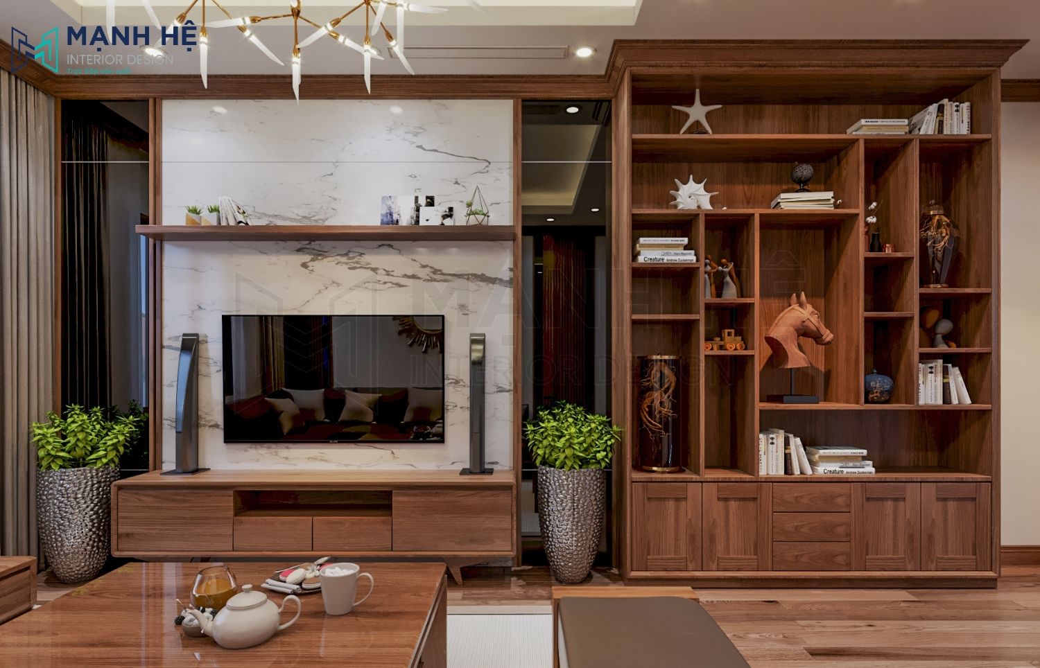 Hệ thống tủ tivi cùng kệ chứa đồ phòng khách