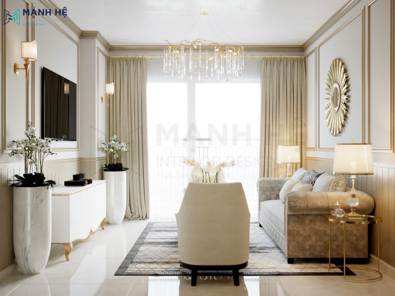 Nội thất Mạnh Hệ đã có kinh nghiệm thiết kế và thi công nhiều công trình chung cư, nhà phố theo phong cách tân cổ điển. Trên đây là gợi ý cho các bạn mẫu thiết kế nhà chung cư phong cách tân cổ điển.