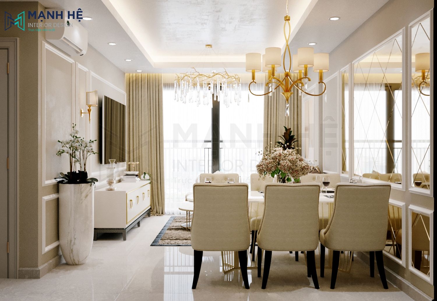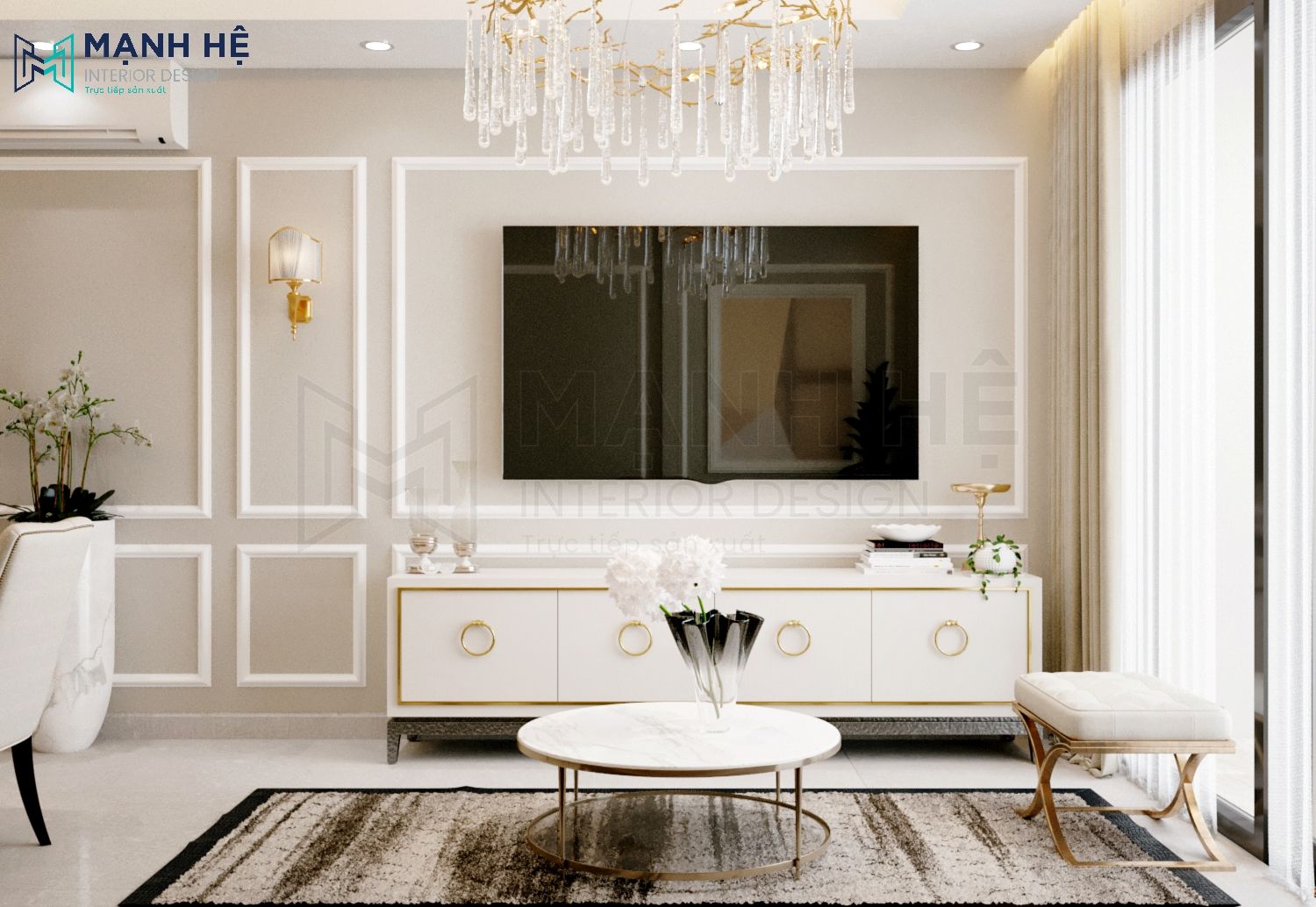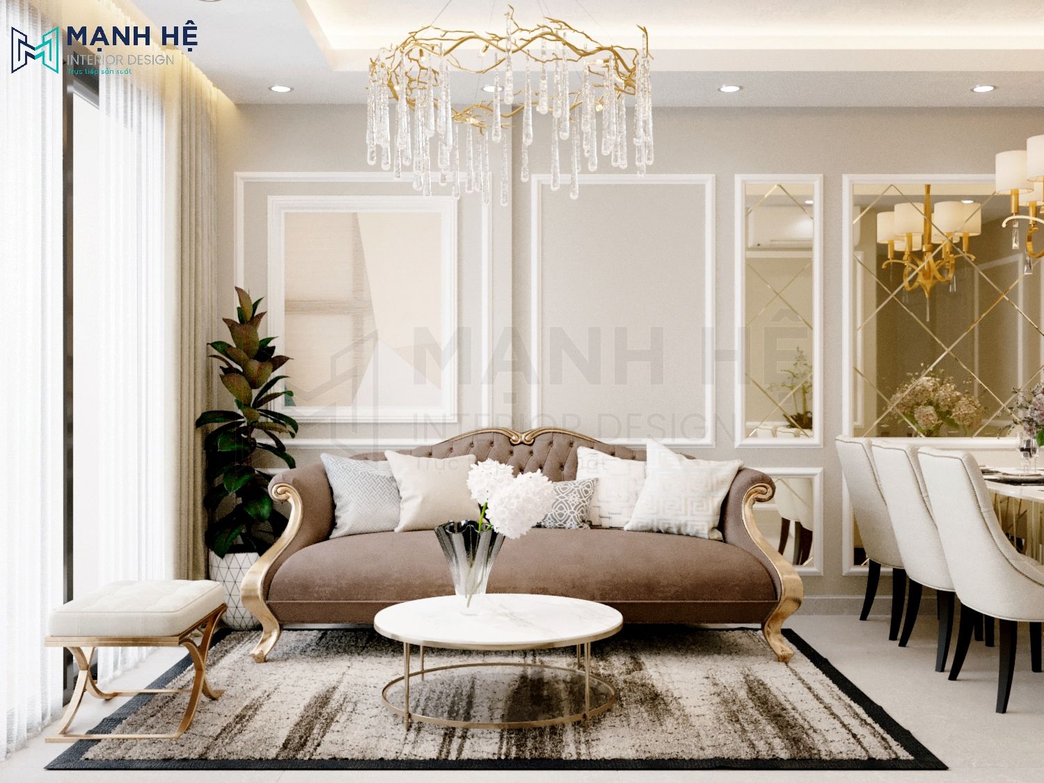 Sở hữu căn hộ chung cư 70m2 tại The Goldview, chị Ngọc tìm tới nội thất Mạnh Hệ với mong muốn căn hộ của mình sẽ trở nên nổi bật và xứng tầm với nơi đây. Khác với mọi người, chị Ngọc không chọn phong cách hiện đại cho căn hộ của mình, chị chọn và yêu thích phong cách nội thất tân cổ điển sang trọng, nhưng không quá cầu kỳ. Hiểu được điều đó, kiến trúc sư của Mạnh Hệ đã nhanh chóng lên ý tưởng và hoàn thành bản thiết kế căn hộ khiến chị rất hài lòng và tiếp tục ký hợp đồng thi công trọn gói căn hộ với chúng tôi.