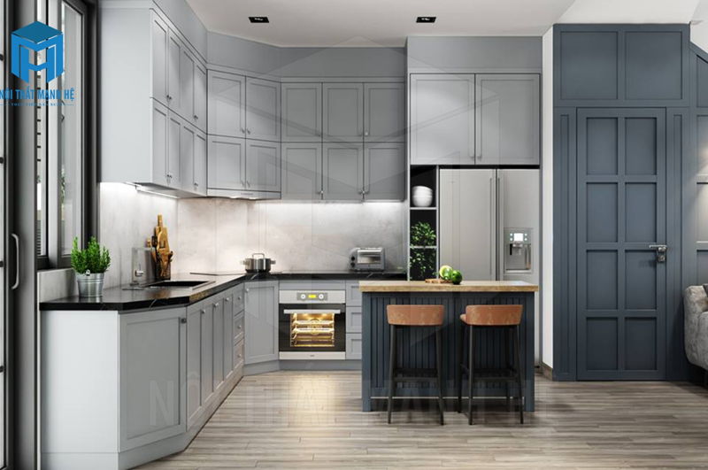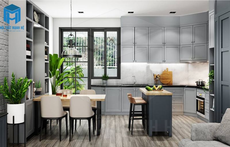 Thiết kế phòng bếp kèm phòng ăn và nối liền với phòng khách là lựa chọn tối ưu cho cuộc sống hiện đại ngày nay. Các gia đình chọn lựa phong cách thiết kế này để có một không gian sinh hoạt mở và kết nối được các vị khách đến thăm.