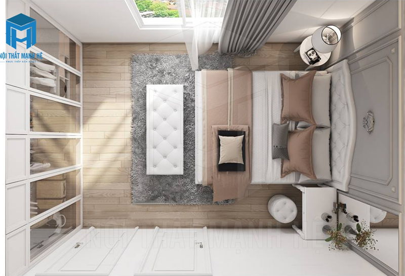 Phòng ngủ của các vị gia chủ luôn luôn được đặt với cửa sổ lớn giúp đón nắng và hướng nắng. Không gian phòng cũng được trang trí rất hiện đại với thảm, giường ngủ cao cấp và bàn phấn.