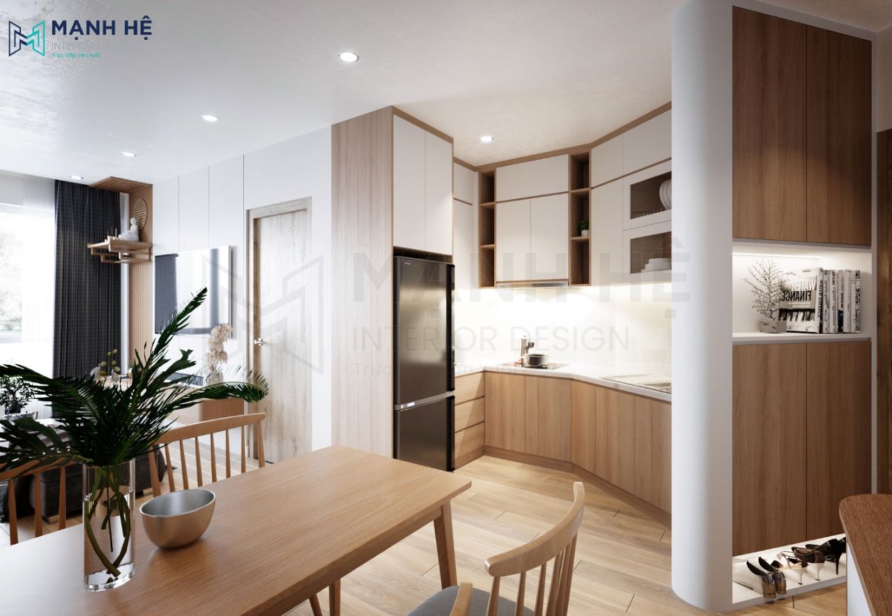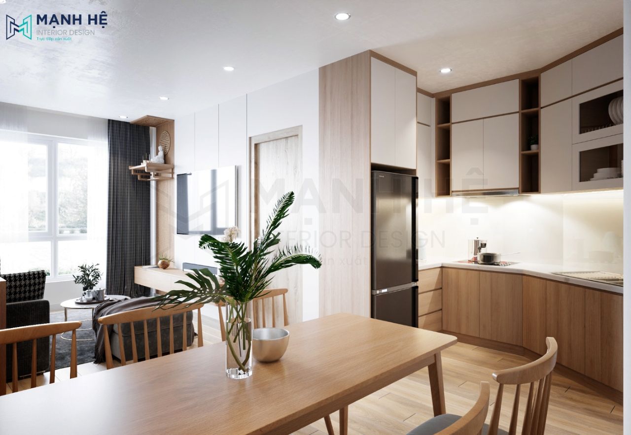 Thiết kế phòng khách liền bếp luôn là lựa chọn phổ biến cho các căn hộ chung cư, vừa giúp gia chủ tiết kiệm được diện tích căn nhà vừa giúp thuận tiện cho việc di chuyển khi ăn uống, nấu nướng.