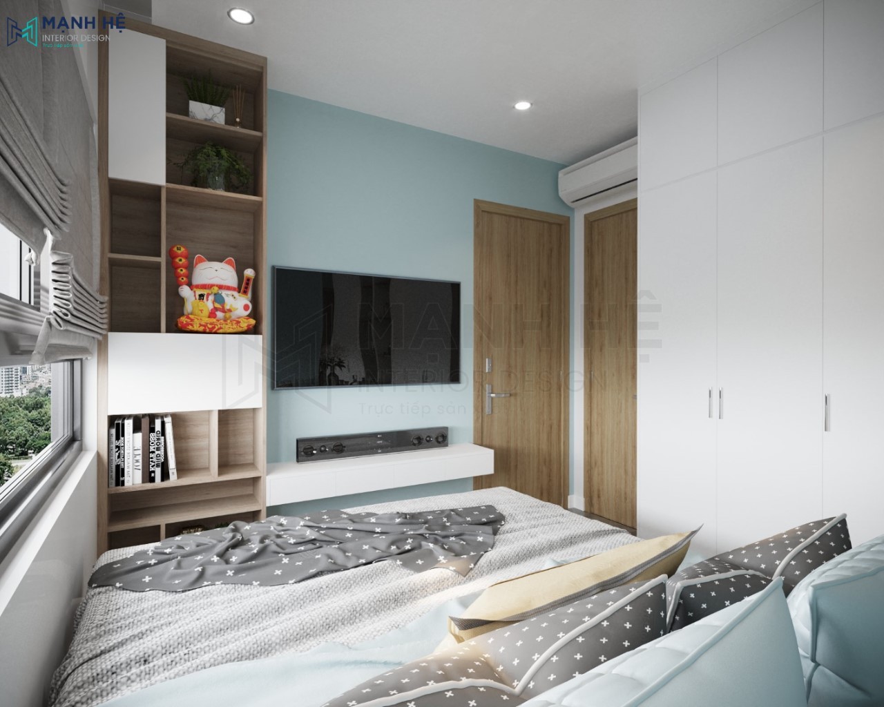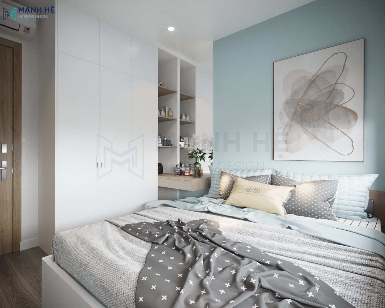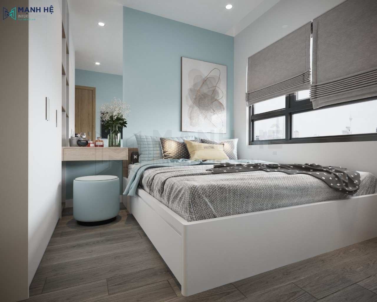 Để giấc ngủ thêm phần trọn vẹn thì thiết kế nội thất phòng ngủ đúng gu hẳn là xu thế mà nhiều Gia chủ hiện nay hướng tới. Nhà thiết kế Mạnh Hệ tô vẽ cho phòng ngủ với gam màu xanh nhạt là gam màu chủ đạo với những nét chấm phá độc đáo sau đây.