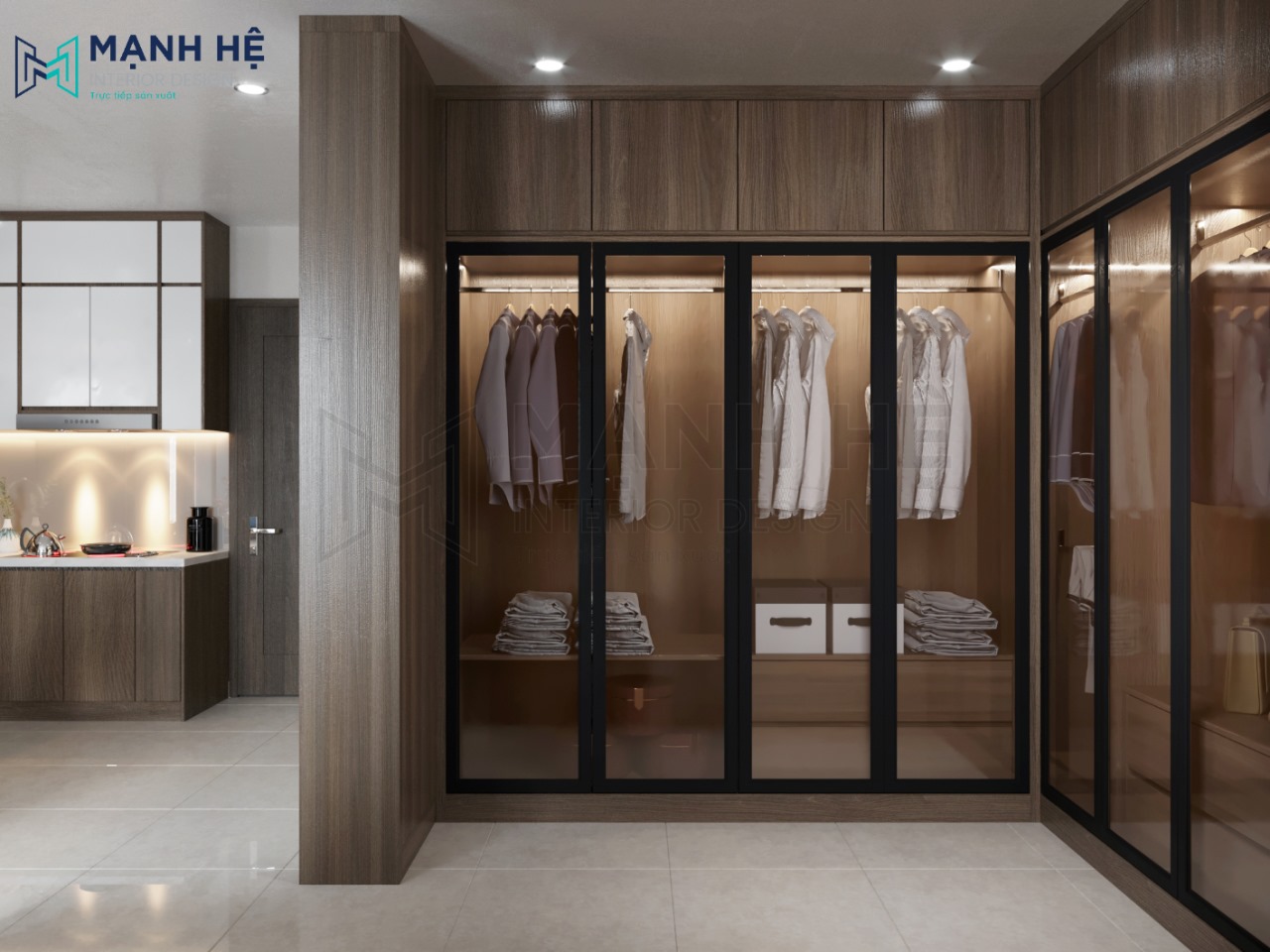 Tủ quần áo cửa kính trong suốt tinh tế và sang trọng