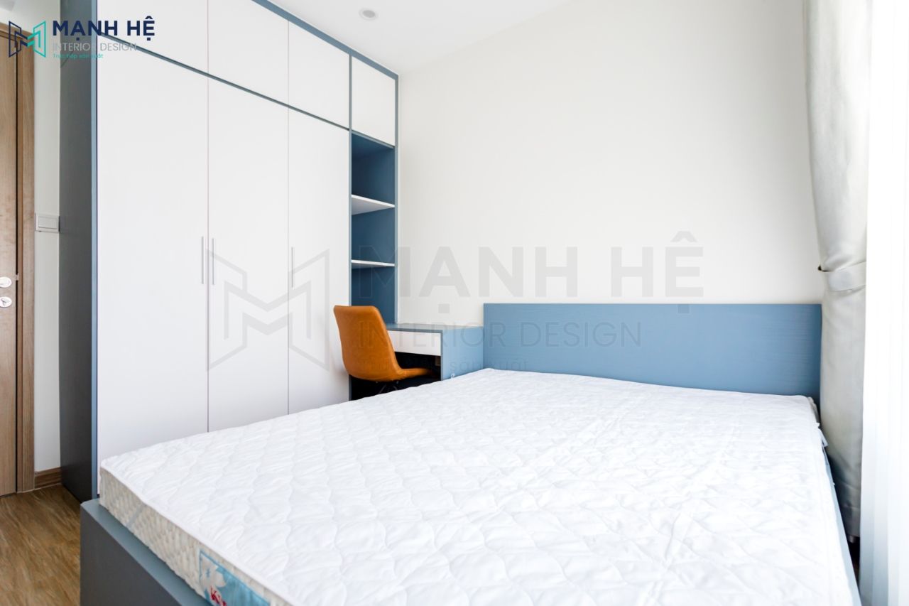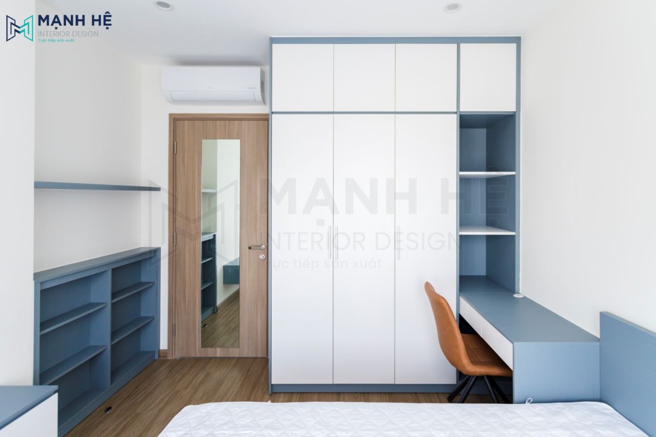 Sự kết hợp giữa gam màu trắng và màu xanh dương luôn dẫn đầu trong căn phòng ngủ thứ 2 bởi cảm giác thanh bình, mát mẻ mà gam màu lạnh này mang lại. Đây là gam màu lý tưởng dành cho những Gia chủ yêu thích sự nhẹ nhàng, đơn giản và tinh tế.